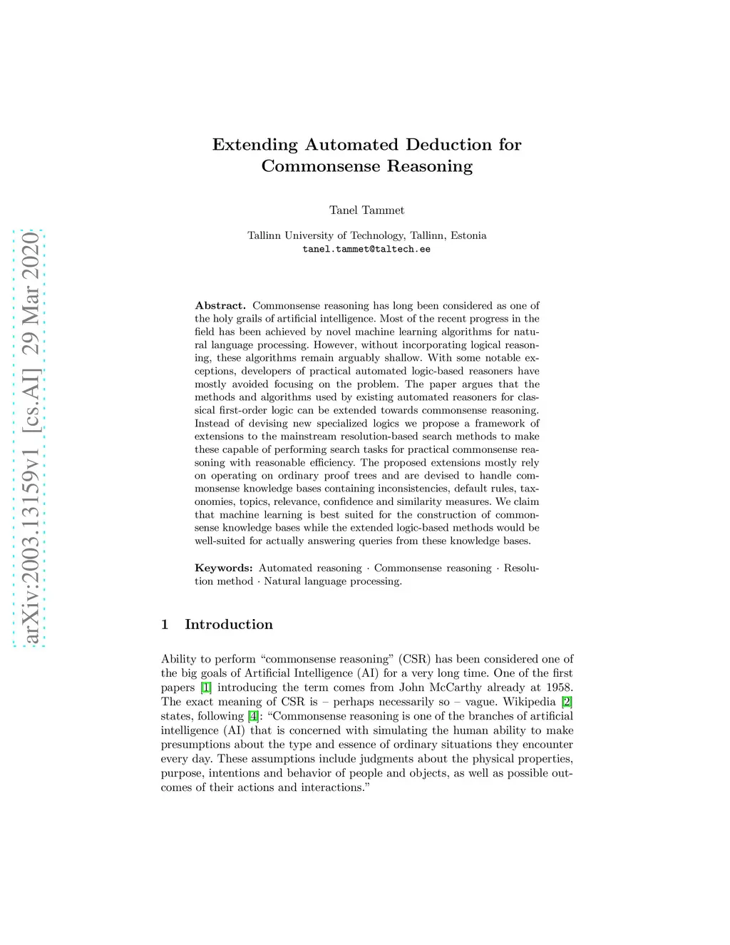 Extending Automated Deduction for Commonsense Reasoning