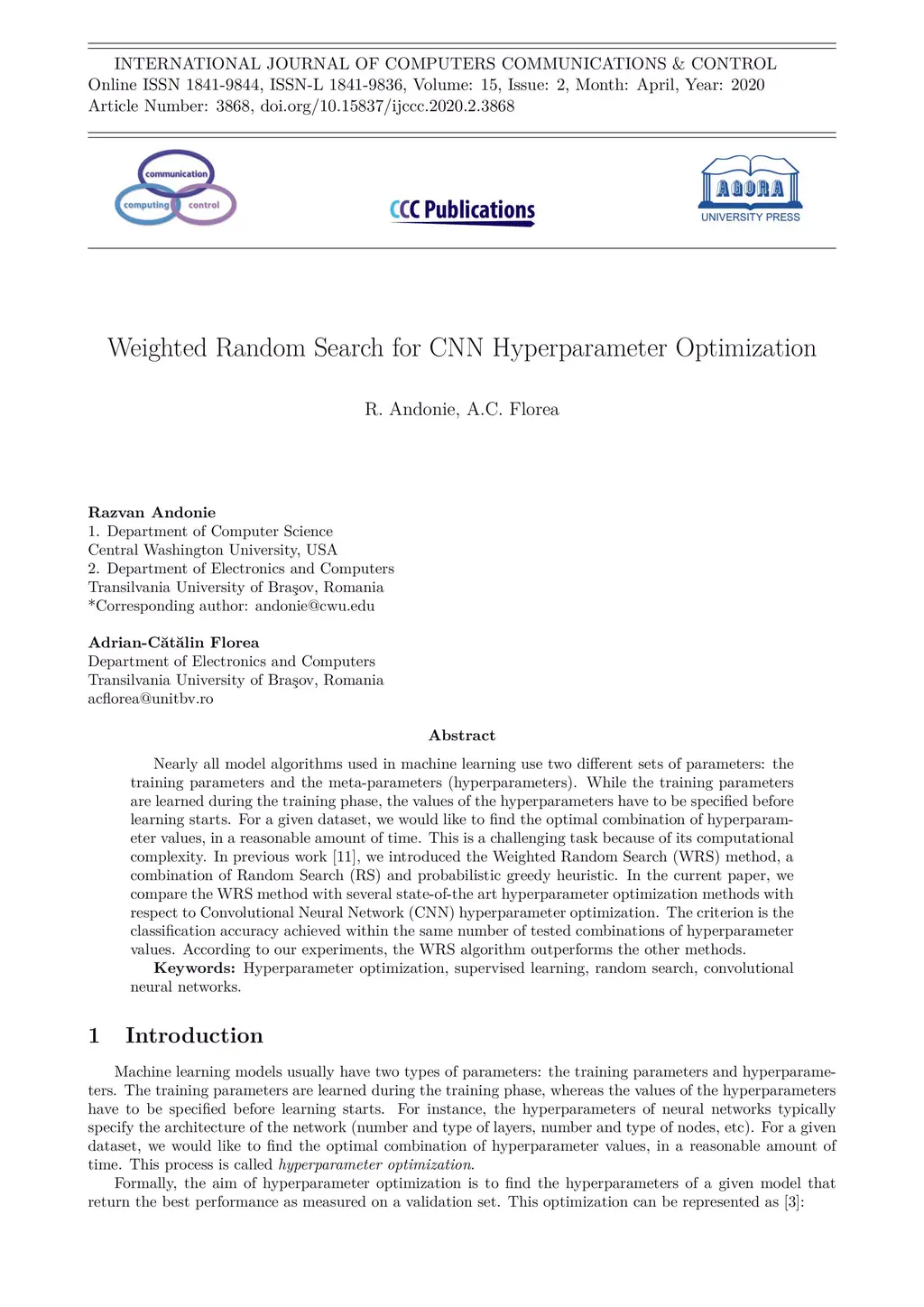 Weighted Random Search for CNN Hyperparameter Optimization