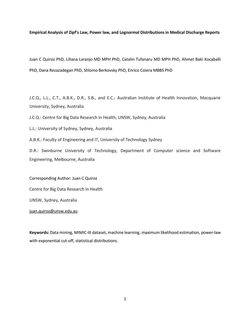 Bayesian modelling and statistical text analysis rely on informed probability priors to encourage good solutions. This paper empirically analyses whether text in medical discharge reports follow Zipf's law, a commonly assumed statistical property of language where word frequency follows a discrete power law distribution. We examined 20,000 medical discharge reports from the MIMIC-III dataset. Methods included splitting the discharge reports into tokens, counting token frequency, fitting power law distributions to the data, and testing whether alternative distributions--lognormal, exponential, stretched exponential, and truncated power law--provided superior fits to the data. Results show that discharge reports are best fit by the truncated power law and lognormal distributions. Our findings suggest that Bayesian modelling and statistical text analysis of discharge report text would benefit from using truncated power law and lognormal probability priors.
