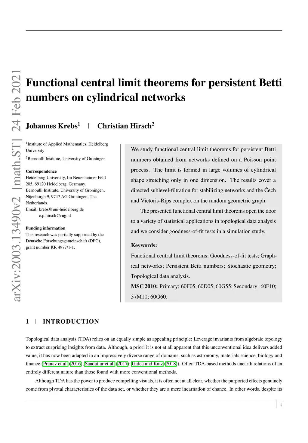 We study functional central limit theorems for persistent Betti numbers obtained from networks defined on a Poisson point process. The limit is formed in large volumes of cylindrical shape stretching only in one dimension. The results cover a directed sublevel-filtration for stabilizing networks and the Cech and Vietoris-Rips complex on the random geometric graph. The presented functional central limit theorems open the door to a variety of statistical applications in topological data analysis and we consider goodness-of-fit tests in a simulation study.