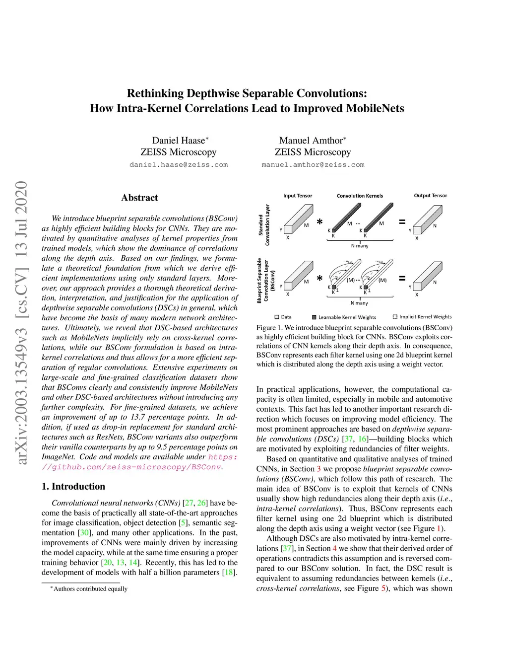 We introduce blueprint separable convolutions (BSConv) as highly efficient building blocks for CNNs. They are motivated by quantitative analyses of kernel properties from trained models, which show the dominance of correlations along the depth axis. Based on our findings, we formulate a theoretical foundation from which we derive efficient implementations using only standard layers. Moreover, our approach provides a thorough theoretical derivation, interpretation, and justification for the application of depthwise separable convolutions (DSCs) in general, which have become the basis of many modern network architectures. Ultimately, we reveal that DSC-based architectures such as MobileNets implicitly rely on cross-kernel correlations, while our BSConv formulation is based on intra-kernel correlations and thus allows for a more efficient separation of regular convolutions. Extensive experiments on large-scale and fine-grained classification datasets show that BSConvs clearly and consistently improve MobileNets and other DSC-based architectures without introducing any further complexity. For fine-grained datasets, we achieve an improvement of up to 13.7 percentage points. In addition, if used as drop-in replacement for standard architectures such as ResNets, BSConv variants also outperform their vanilla counterparts by up to 9.5 percentage points on ImageNet. Code and models are available under https://github.com/zeiss-microscopy/BSConv.