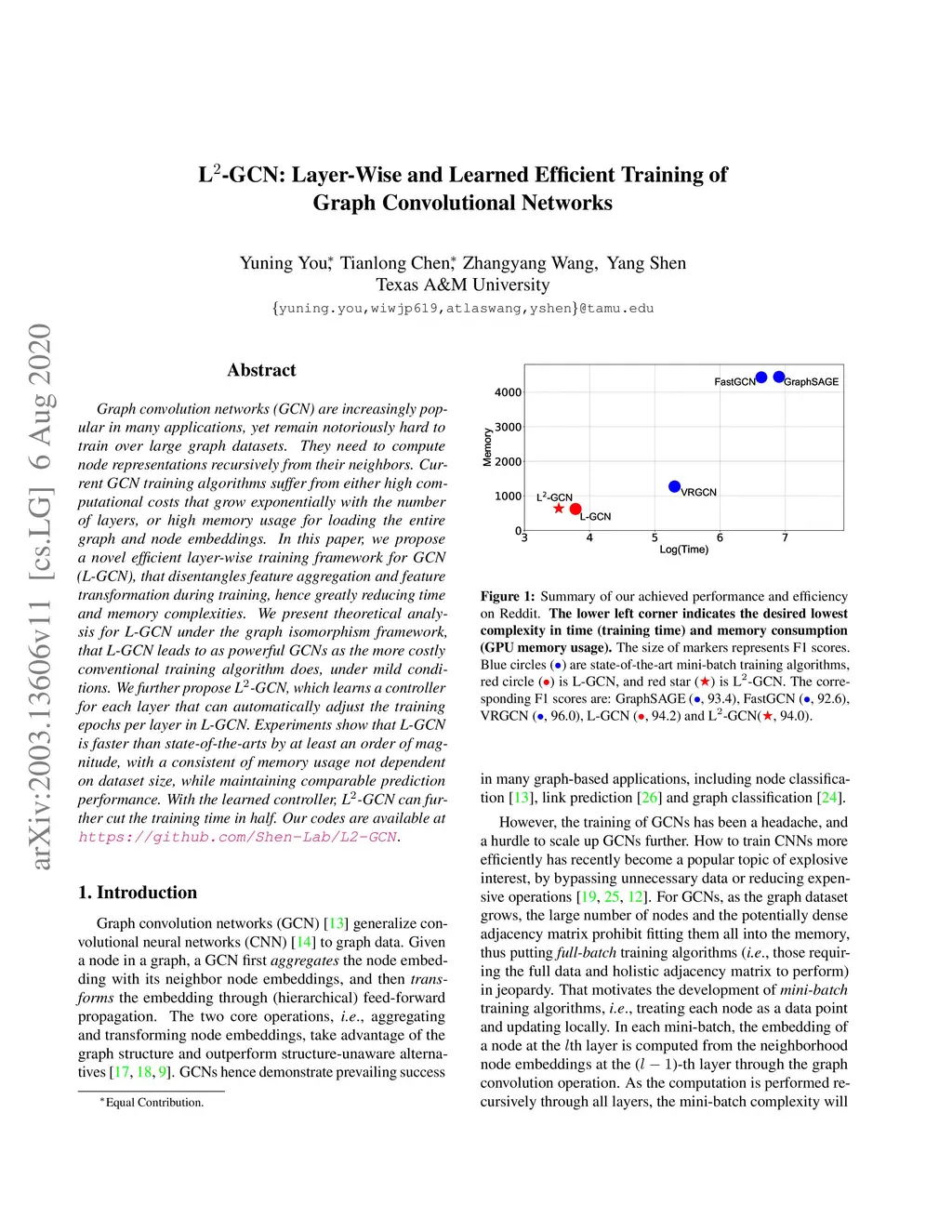 L-GCN: Layer-Wise and Learned Efficient Training of Graph