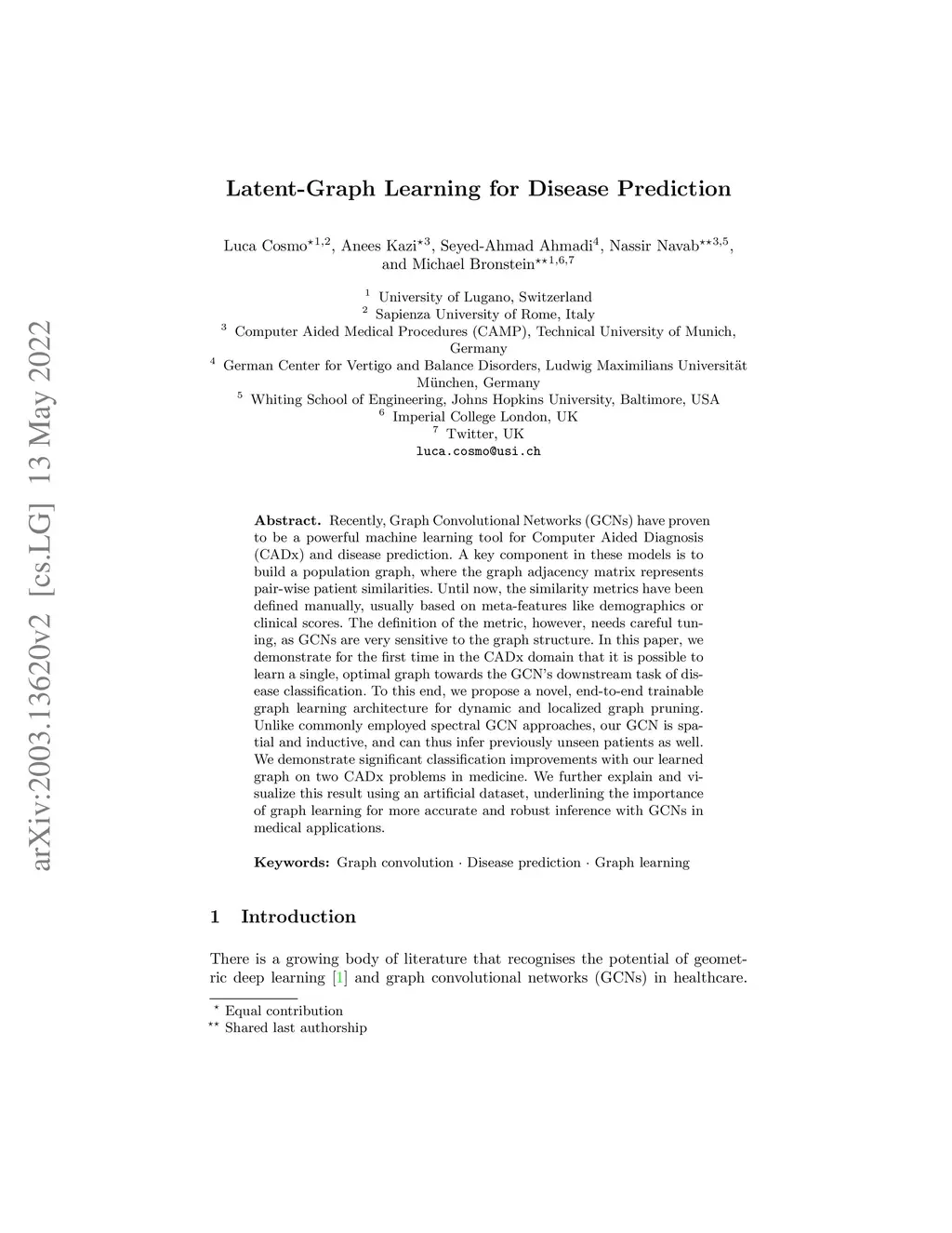 Recently, Graph Convolutional Networks (GCNs) have proven to be a powerful machine learning tool for Computer-Aided Diagnosis (CADx) and disease prediction. A key component in these models is to build a population graph, where the graph adjacency matrix represents pair-wise patient similarities. Until now, the similarity metrics have been defined manually, usually based on meta-features like demographics or clinical scores. The definition of the metric, however, needs careful tuning, as GCNs are very sensitive to the graph structure. In this paper, we demonstrate for the first time in the CADx domain that it is possible to learn a single, optimal graph towards the GCN's downstream task of disease classification. To this end, we propose a novel, end-to-end trainable graph learning architecture for dynamic and localized graph pruning. Unlike commonly employed spectral GCN approaches, our GCN is spatial and inductive, and can thus infer previously unseen patients as well. We demonstrate significant classification improvements with our learned graph on two CADx problems in medicine. We further explain and visualize this result using an artificial dataset, underlining the importance of graph learning for more accurate and robust inference with GCNs in medical applications.