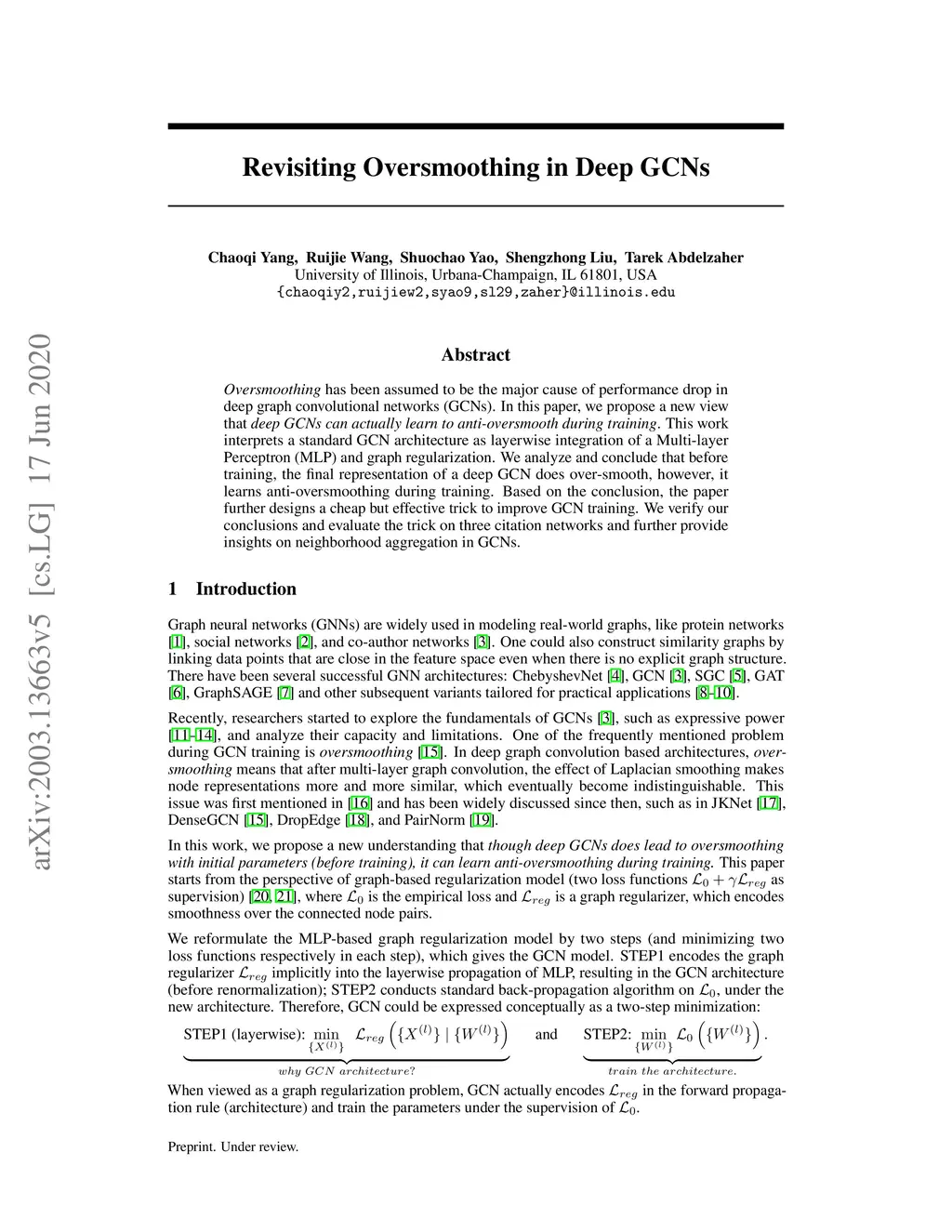 Oversmoothing has been assumed to be the major cause of performance drop in deep graph convolutional networks (GCNs). In this paper, we propose a new view that deep GCNs can actually learn to anti-oversmooth during training. This work interprets a standard GCN architecture as layerwise integration of a Multi-layer Perceptron (MLP) and graph regularization. We analyze and conclude that before training, the final representation of a deep GCN does over-smooth, however, it learns anti-oversmoothing during training. Based on the conclusion, the paper further designs a cheap but effective trick to improve GCN training. We verify our conclusions and evaluate the trick on three citation networks and further provide insights on neighborhood aggregation in GCNs.