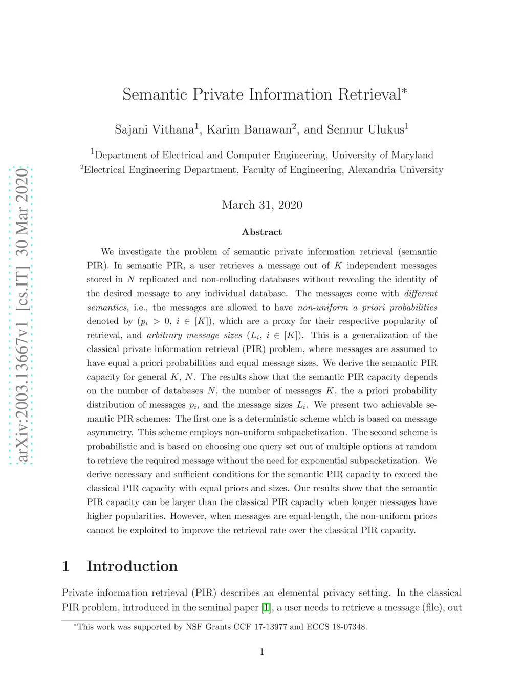 We investigate the problem of semantic private information retrieval (semantic PIR). In semantic PIR, a user retrieves a message out of independent messages stored in replicated and non-colluding databases without revealing the identity of the desired message to any individual database. The messages come with \emph{different semantics}, i.e., the messages are allowed to have \emph{non-uniform a priori probabilities} denoted by , which are a proxy for their respective popularity of retrieval, and \emph{arbitrary message sizes} . This is a generalization of the classical private information retrieval (PIR) problem, where messages are assumed to have equal a priori probabilities and equal message sizes. We derive the semantic PIR capacity for general , . The results show that the semantic PIR capacity depends on the number of databases , the number of messages , the a priori probability distribution of messages , and the message sizes . We present two achievable semantic PIR schemes: The first one is a deterministic scheme which is based on message asymmetry. This scheme employs non-uniform subpacketization. The second scheme is probabilistic and is based on choosing one query set out of multiple options at random to retrieve the required message without the need for exponential subpacketization. We derive necessary and sufficient conditions for the semantic PIR capacity to exceed the classical PIR capacity with equal priors and sizes. Our results show that the semantic PIR capacity can be larger than the classical PIR capacity when longer messages have higher popularities. However, when messages are equal-length, the non-uniform priors cannot be exploited to improve the retrieval rate over the classical PIR capacity.
