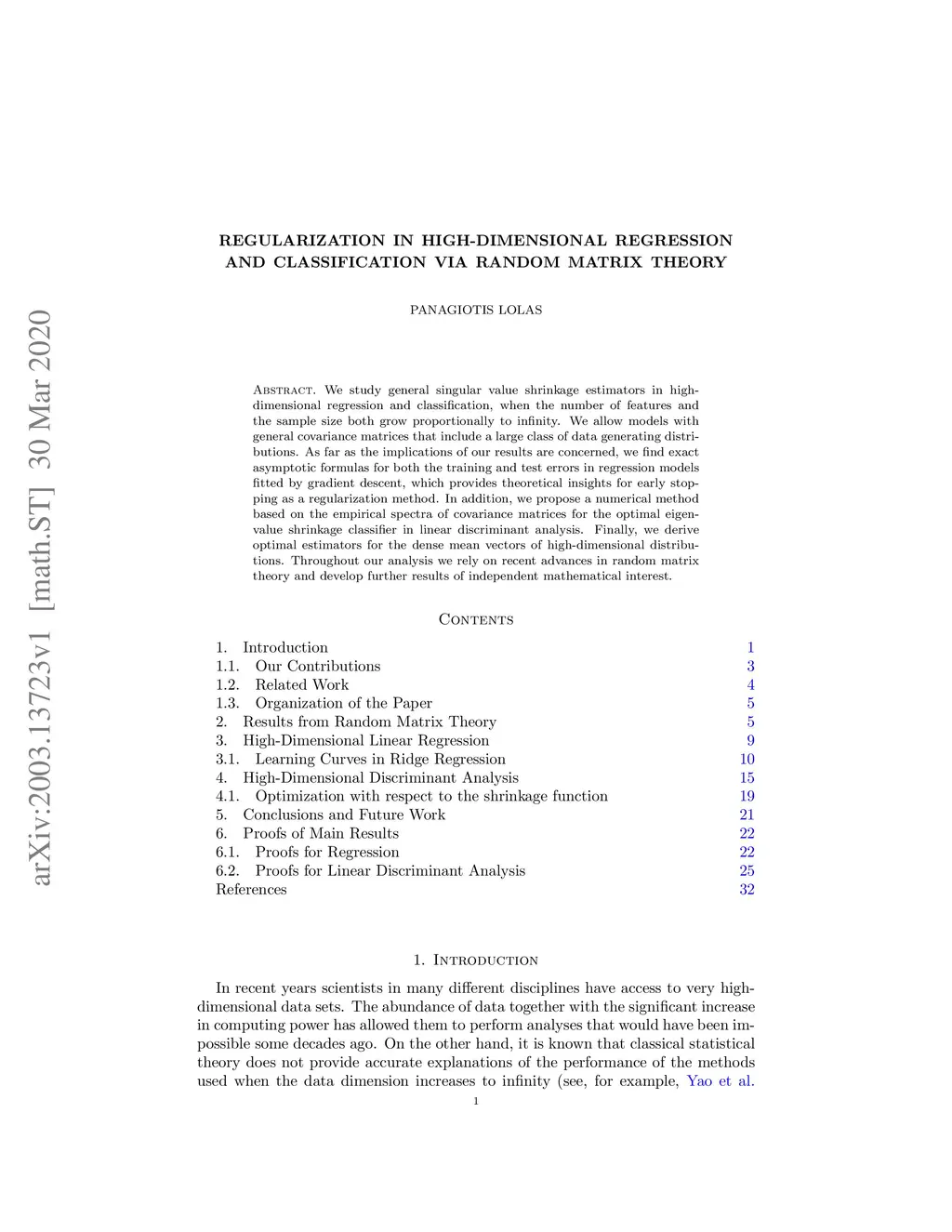 Regularization in High-Dimensional Regression and Classification via