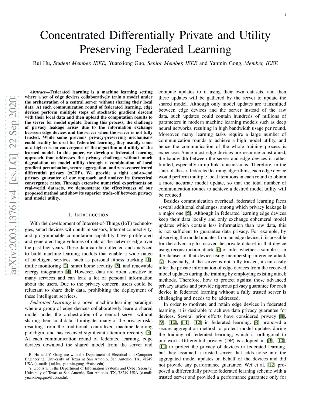 Federated learning is a machine learning setting where a set of edge devices collaboratively train a model under the orchestration of a central server without sharing their local data. At each communication round of federated learning, edge devices perform multiple steps of stochastic gradient descent with their local data and then upload the computation results to the server for model update. During this process, the challenge of privacy leakage arises due to the information exchange between edge devices and the server when the server is not fully trusted. While some previous privacy-preserving mechanisms could readily be used for federated learning, they usually come at a high cost on convergence of the algorithm and utility of the learned model. In this paper, we develop a federated learning approach that addresses the privacy challenge without much degradation on model utility through a combination of local gradient perturbation, secure aggregation, and zero-concentrated differential privacy (zCDP). We provide a tight end-to-end privacy guarantee of our approach and analyze its theoretical convergence rates. Through extensive numerical experiments on real-world datasets, we demonstrate the effectiveness of our proposed method and show its superior trade-off between privacy and model utility.