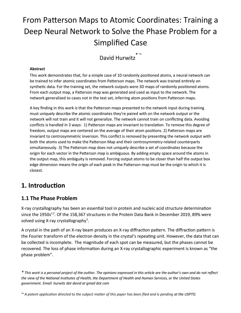 This work demonstrates that, for a simple case of 10 randomly positioned atoms, a neural network can be trained to infer atomic coordinates from Patterson maps. The network was trained entirely on synthetic data. For the training set, the network outputs were 3D maps of randomly positioned atoms. From each output map, a Patterson map was generated and used as input to the network. The network generalized to cases not in the test set, inferring atom positions from Patterson maps. A key finding in this work is that the Patterson maps presented to the network input during training must uniquely describe the atomic coordinates they are paired with on the network output or the network will not train and it will not generalize. The network cannot train on conflicting data. Avoiding conflicts is handled in 3 ways: 1. Patterson maps are invariant to translation. To remove this degree of freedom, output maps are centered on the average of their atom positions. 2. Patterson maps are invariant to centrosymmetric inversion. This conflict is removed by presenting the network output with both the atoms used to make the Patterson Map and their centrosymmetry-related counterparts simultaneously. 3. The Patterson map does not uniquely describe a set of coordinates because the origin for each vector in the Patterson map is ambiguous. By adding empty space around the atoms in the output map, this ambiguity is removed. Forcing output atoms to be closer than half the output box edge dimension means the origin of each peak in the Patterson map must be the origin to which it is closest.