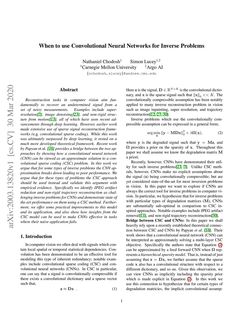 Reconstruction tasks in computer vision aim fundamentally to recover an undetermined signal from a set of noisy measurements. Examples include super-resolution, image denoising, and non-rigid structure from motion, all of which have seen recent advancements through deep learning. However, earlier work made extensive use of sparse signal reconstruction frameworks (e.g convolutional sparse coding). While this work was ultimately surpassed by deep learning, it rested on a much more developed theoretical framework. Recent work by Papyan et. al provides a bridge between the two approaches by showing how a convolutional neural network (CNN) can be viewed as an approximate solution to a convolutional sparse coding (CSC) problem. In this work we argue that for some types of inverse problems the CNN approximation breaks down leading to poor performance. We argue that for these types of problems the CSC approach should be used instead and validate this argument with empirical evidence. Specifically we identify JPEG artifact reduction and non-rigid trajectory reconstruction as challenging inverse problems for CNNs and demonstrate state of the art performance on them using a CSC method. Furthermore, we offer some practical improvements to this model and its application, and also show how insights from the CSC model can be used to make CNNs effective in tasks where their naive application fails.