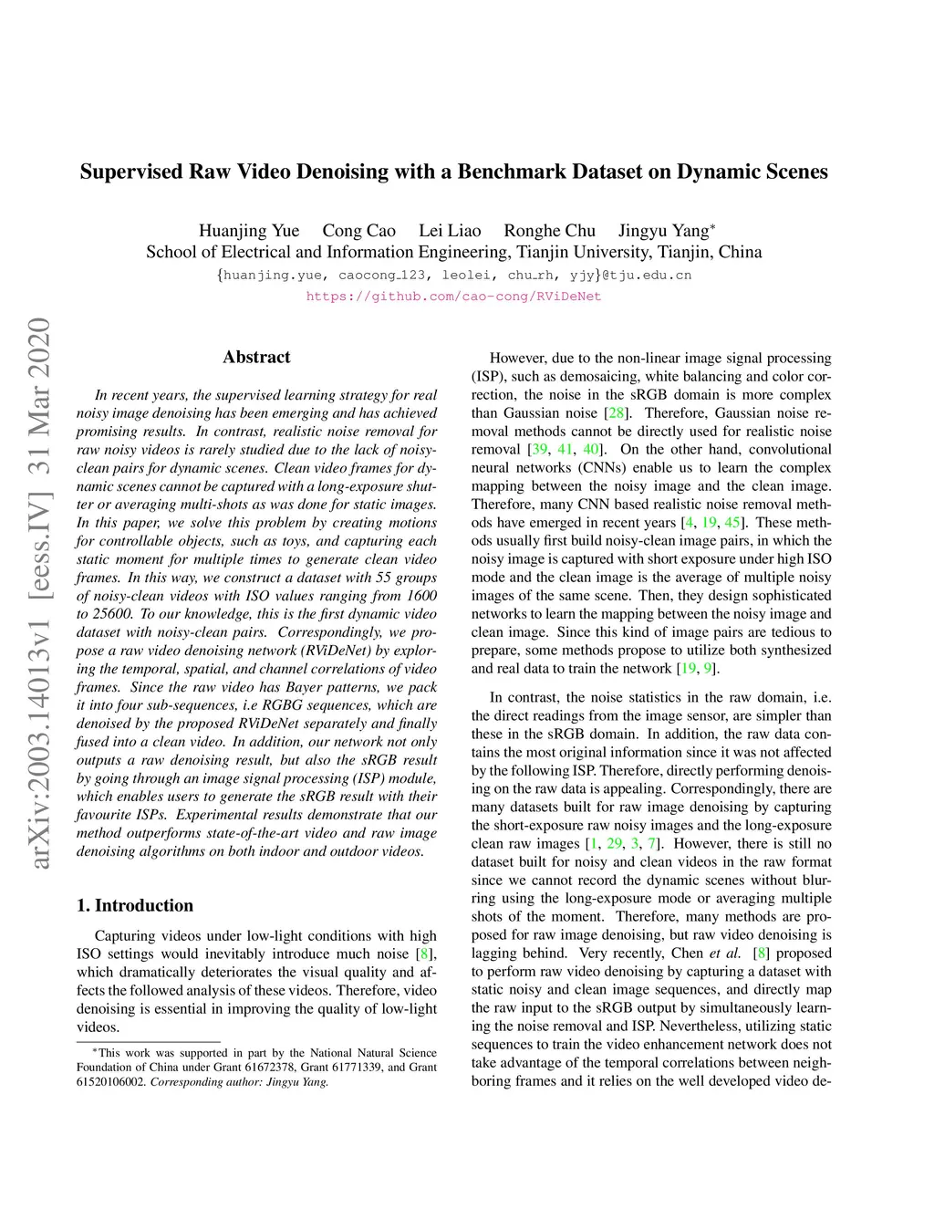 Supervised Raw Video Denoising with a Benchmark Dataset on Dynamic