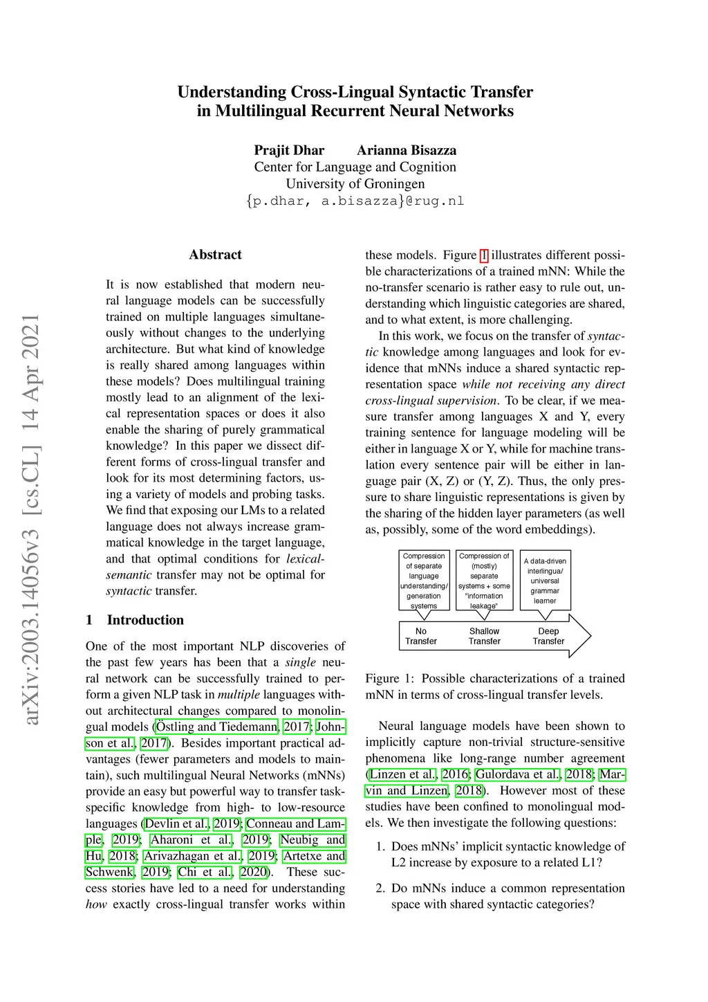 It is now established that modern neural language models can be successfully trained on multiple languages simultaneously without changes to the underlying architecture. But what kind of knowledge is really shared among languages within these models? Does multilingual training mostly lead to an alignment of the lexical representation spaces or does it also enable the sharing of purely grammatical knowledge? In this paper we dissect different forms of cross-lingual transfer and look for its most determining factors, using a variety of models and probing tasks. We find that exposing our LMs to a related language does not always increase grammatical knowledge in the target language, and that optimal conditions for lexical-semantic transfer may not be optimal for syntactic transfer.