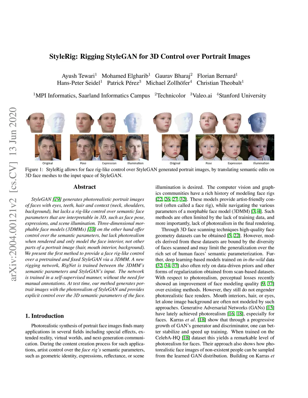 StyleRig: Rigging StyleGAN for 3D Control over Portrait Images