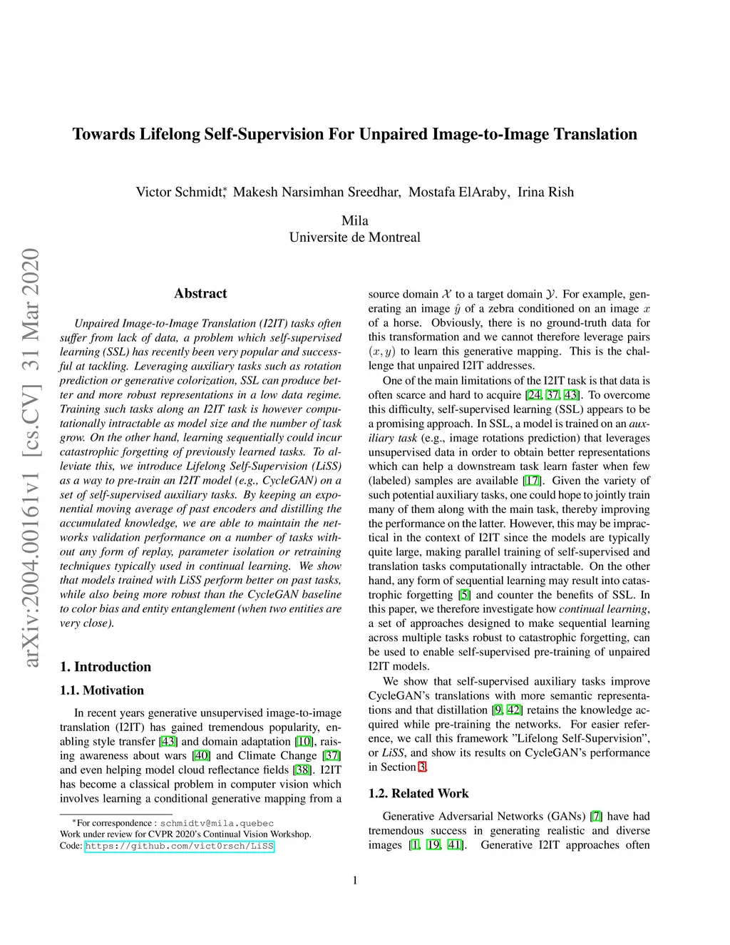 Towards Lifelong Self-Supervision For Unpaired Image-to-Image