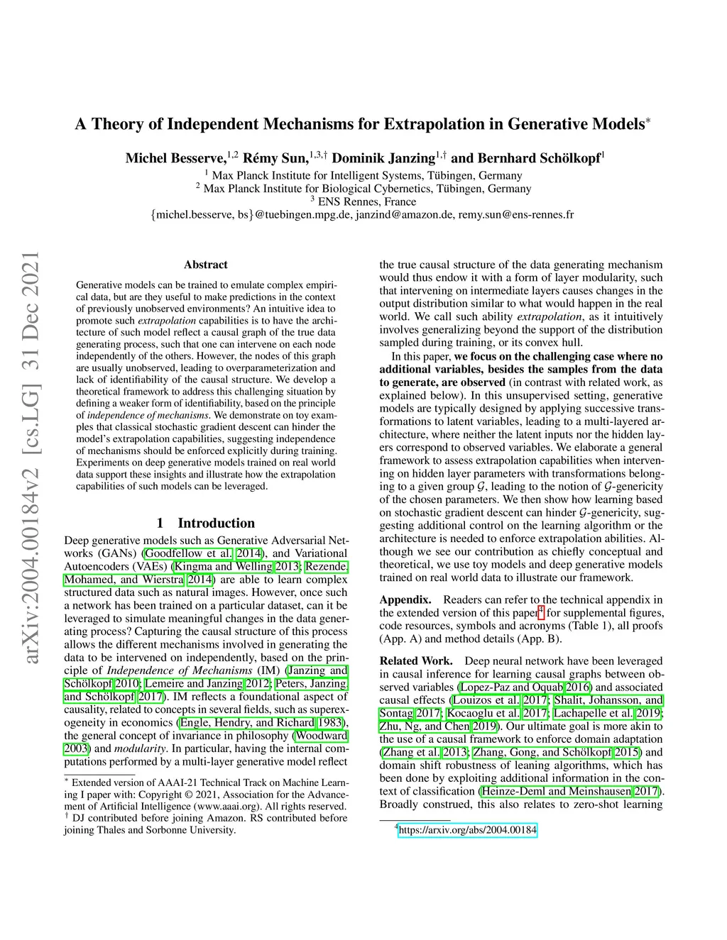 A theory of independent mechanisms for extrapolation in generative