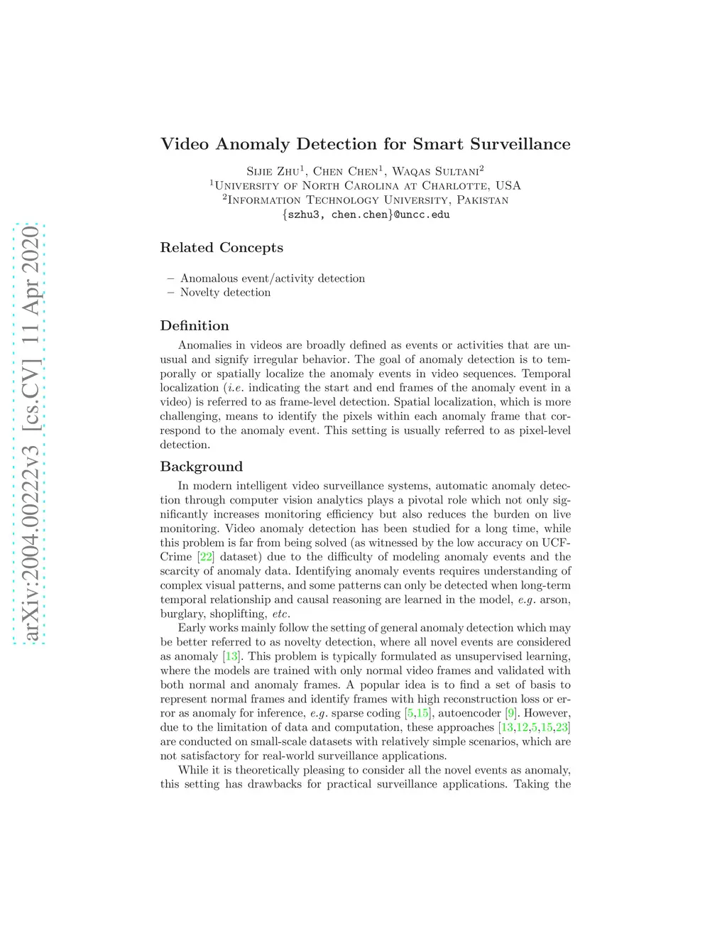 Video Anomaly Detection for Smart Surveillance