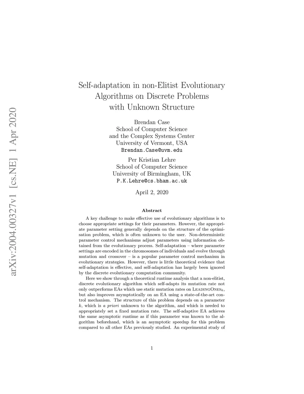 A key challenge to make effective use of evolutionary algorithms is to choose appropriate settings for their parameters. However, the appropriate parameter setting generally depends on the structure of the optimisation problem, which is often unknown to the user. Non-deterministic parameter control mechanisms adjust parameters using information obtained from the evolutionary process. Self-adaptation -- where parameter settings are encoded in the chromosomes of individuals and evolve through mutation and crossover -- is a popular parameter control mechanism in evolutionary strategies. However, there is little theoretical evidence that self-adaptation is effective, and self-adaptation has largely been ignored by the discrete evolutionary computation community. Here we show through a theoretical runtime analysis that a non-elitist, discrete evolutionary algorithm which self-adapts its mutation rate not only outperforms EAs which use static mutation rates on \leadingones, but also improves asymptotically on an EA using a state-of-the-art control mechanism. The structure of this problem depends on a parameter , which is \emph{a priori} unknown to the algorithm, and which is needed to appropriately set a fixed mutation rate. The self-adaptive EA achieves the same asymptotic runtime as if this parameter was known to the algorithm beforehand, which is an asymptotic speedup for this problem compared to all other EAs previously studied. An experimental study of how the mutation-rates evolve show that they respond adequately to a diverse range of problem structures. These results suggest that self-adaptation should be adopted more broadly as a parameter control mechanism in discrete, non-elitist evolutionary algorithms.
