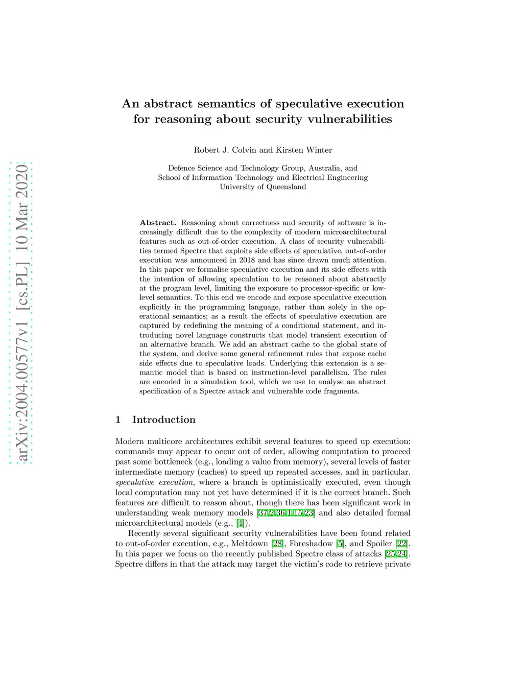 Reasoning about correctness and security of software is increasingly difficult due to the complexity of modern microarchitectural features such as out-of-order execution. A class of security vulnerabilities termed Spectre that exploits side effects of speculative, out-of-order execution was announced in 2018 and has since drawn much attention. In this paper we formalise speculative execution and its side effects with the intention of allowing speculation to be reasoned about abstractly at the program level, limiting the exposure to processor-specific or low-level semantics. To this end we encode and expose speculative execution explicitly in the programming language, rather than solely in the operational semantics; as a result the effects of speculative execution are captured by redefining the meaning of a conditional statement, and introducing novel language constructs that model transient execution of an alternative branch. We add an abstract cache to the global state of the system, and derive some general refinement rules that expose cache side effects due to speculative loads. Underlying this extension is a semantic model that is based on instruction-level parallelism. The rules are encoded in a simulation tool, which we use to analyse an abstract specification of a Spectre attack and vulnerable code fragments.