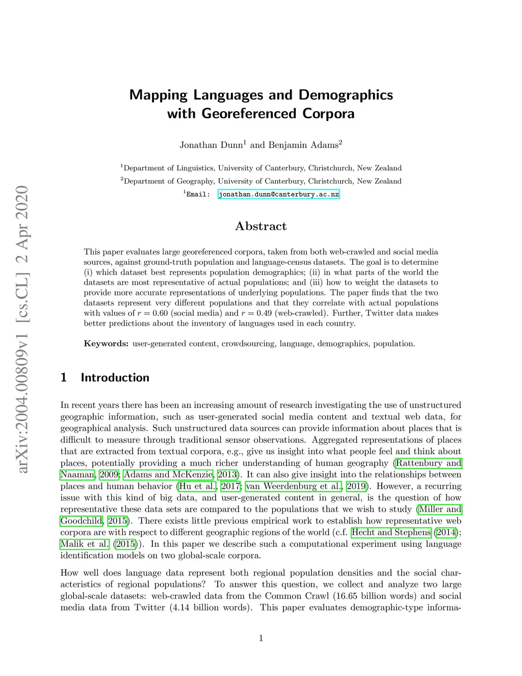 Mapping Languages and Demographics with Georeferenced Corpora