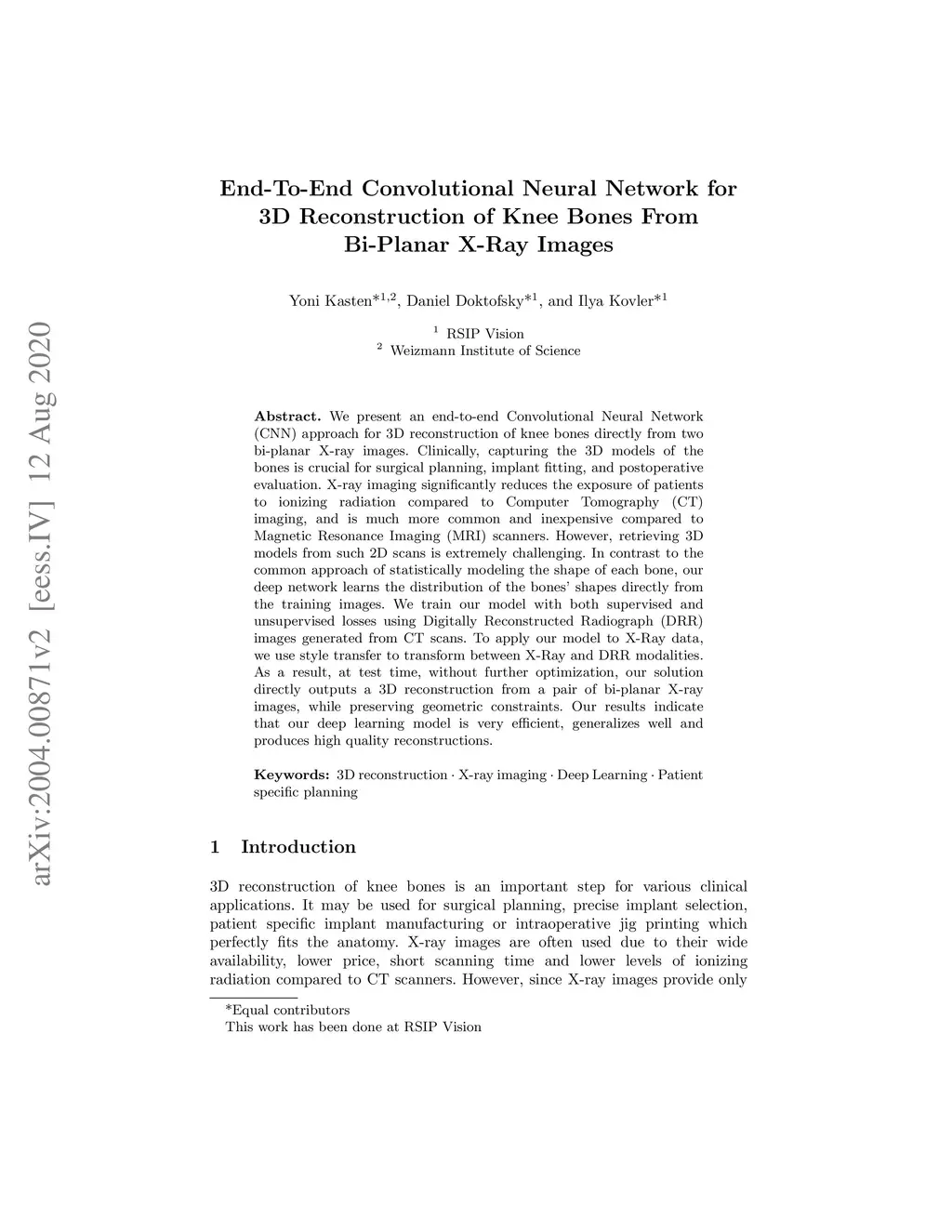 End-To-End Convolutional Neural Network for 3D Reconstruction of Knee