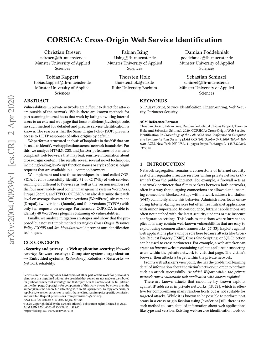 CORSICA: Cross-Origin Web Service Identification
