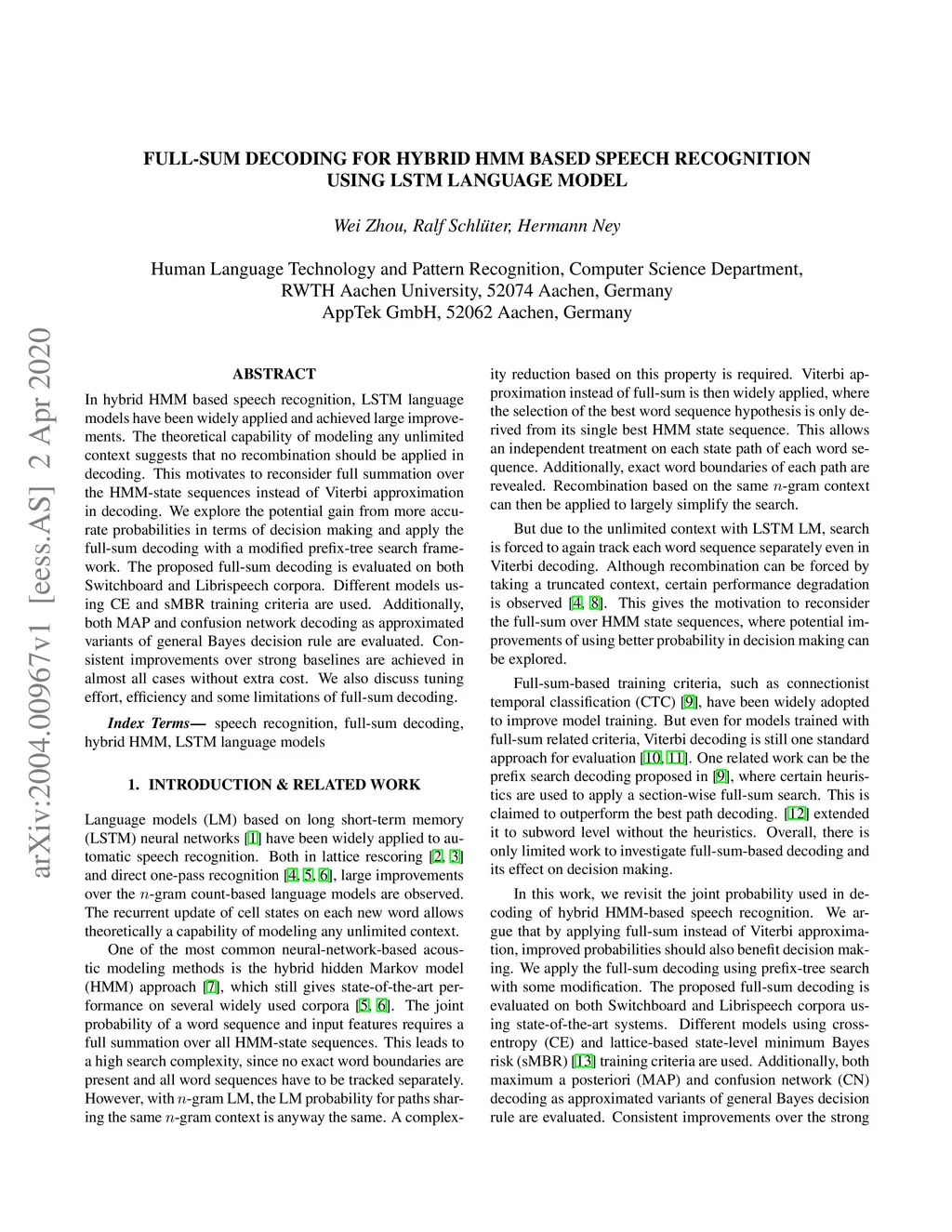 Full-Sum Decoding for Hybrid HMM based Speech Recognition using LSTM