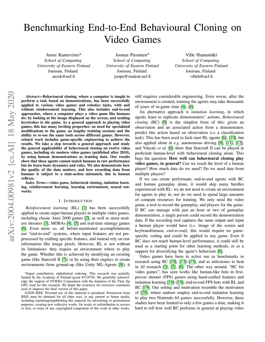 Benchmarking End-to-End Behavioural Cloning on Video Games