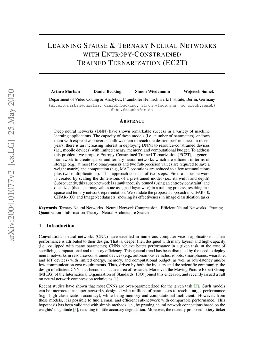 Trained Ternarization (EC2T)