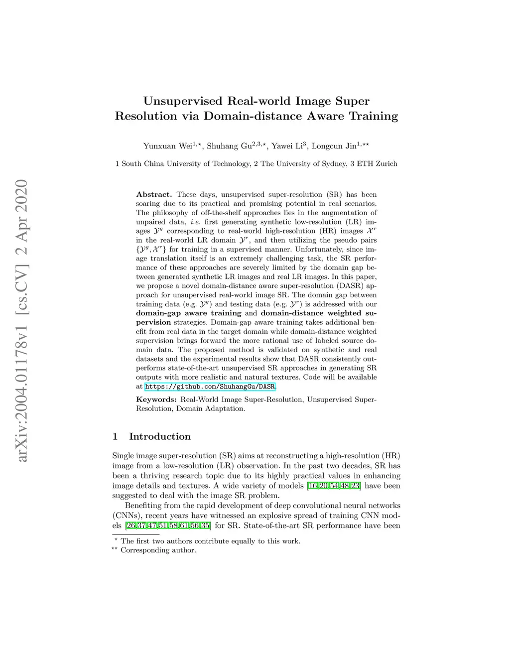 Unsupervised Real-world Image Super Resolution via Domain-distance Aware