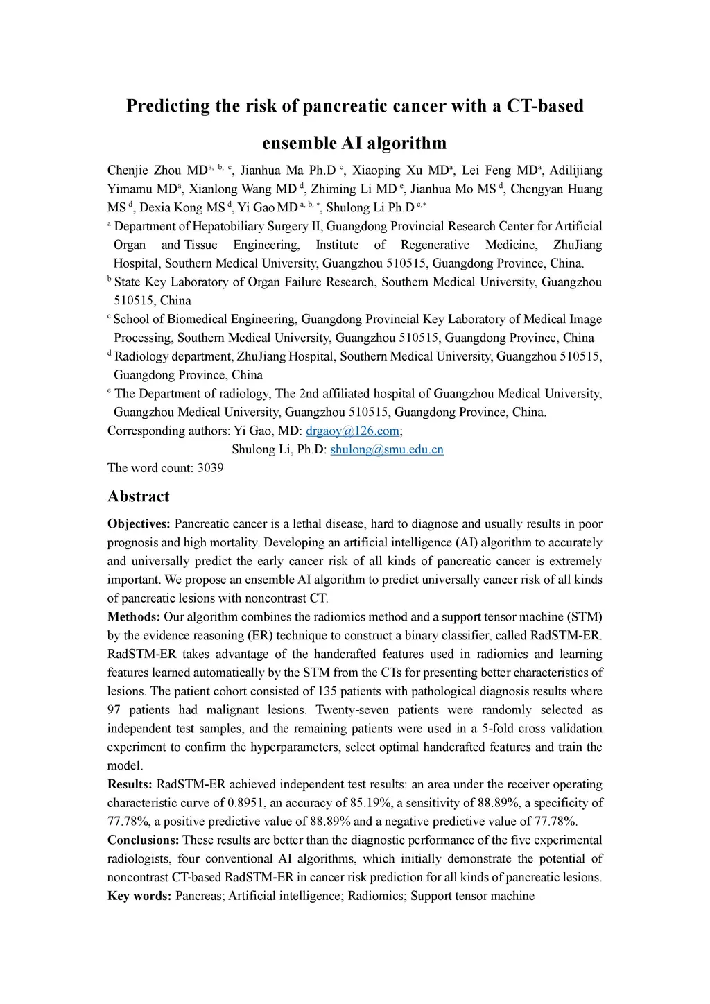 Predicting the risk of pancreatic cancer with a CT-based ensemble AI