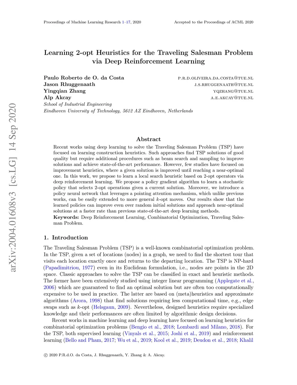 Learning 2-opt Heuristics for the Traveling Salesman Problem via Deep