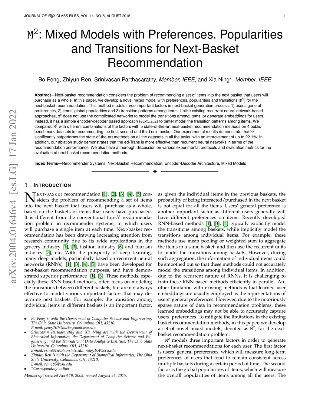M2: Mixed Models with Preferences, Popularities and Transitions for