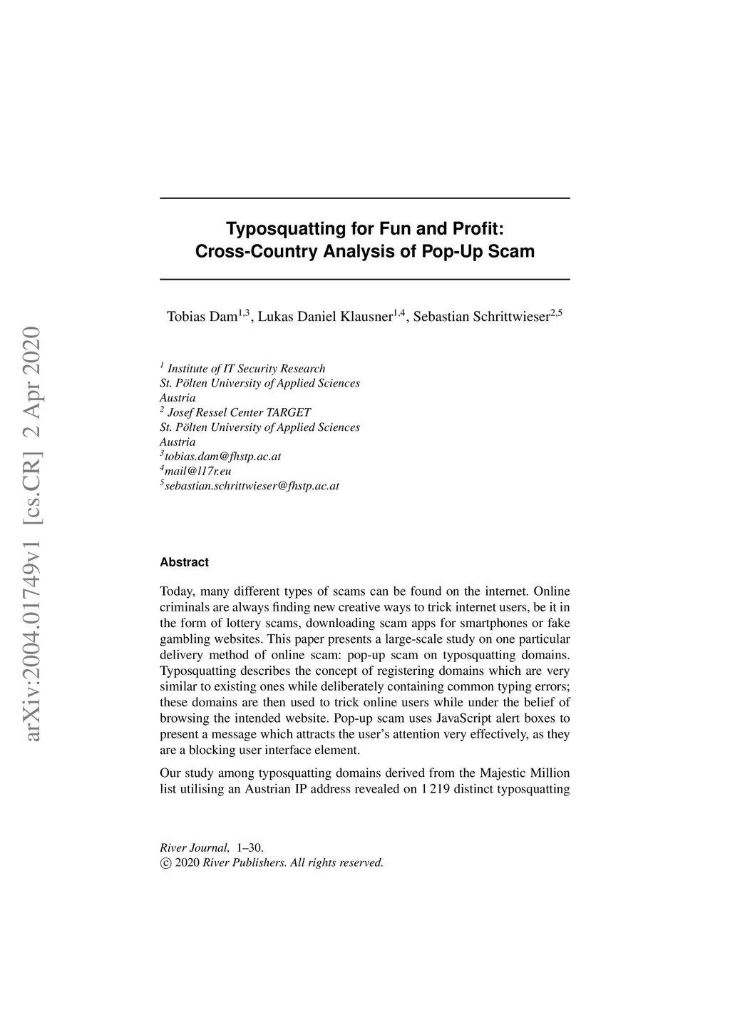 Typosquatting for Fun and Profit: Cross-Country Analysis of Pop-Up Scam