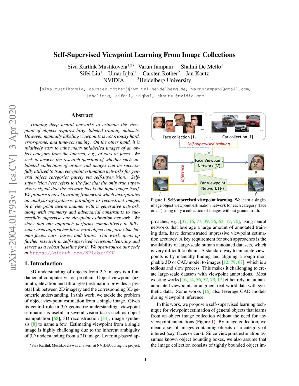 Self-Supervised Viewpoint Learning From Image Collections