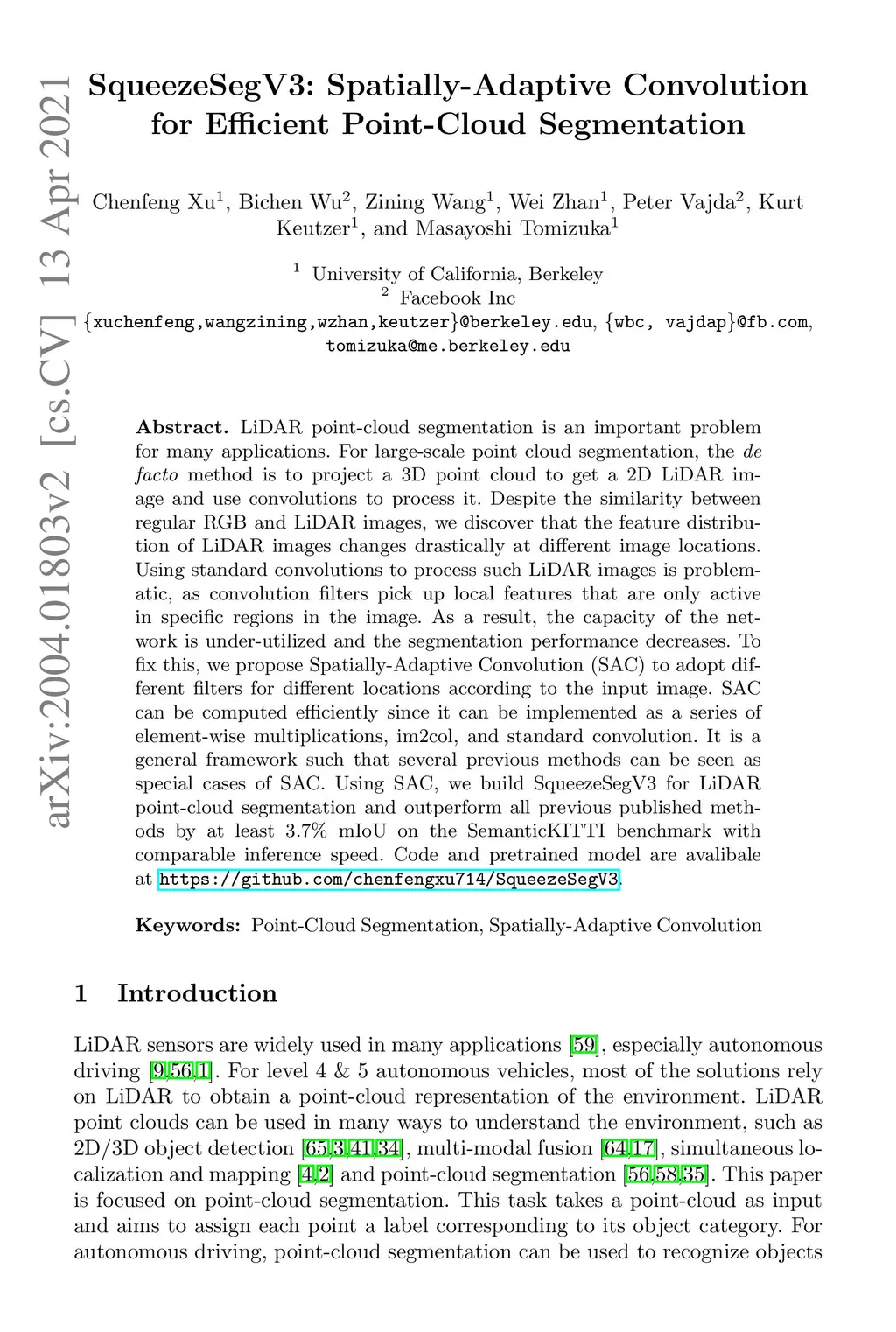 SqueezeSegV3: Spatially-Adaptive Convolution for Efficient Point-Cloud