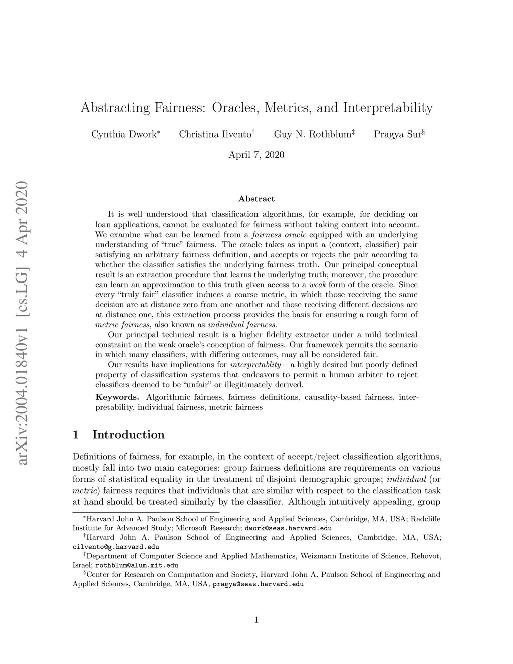 It is well understood that classification algorithms, for example, for deciding on loan applications, cannot be evaluated for fairness without taking context into account. We examine what can be learned from a fairness oracle equipped with an underlying understanding of ``true'' fairness. The oracle takes as input a (context, classifier) pair satisfying an arbitrary fairness definition, and accepts or rejects the pair according to whether the classifier satisfies the underlying fairness truth. Our principal conceptual result is an extraction procedure that learns the underlying truth; moreover, the procedure can learn an approximation to this truth given access to a weak form of the oracle. Since every ``truly fair'' classifier induces a coarse metric, in which those receiving the same decision are at distance zero from one another and those receiving different decisions are at distance one, this extraction process provides the basis for ensuring a rough form of metric fairness, also known as individual fairness. Our principal technical result is a higher fidelity extractor under a mild technical constraint on the weak oracle's conception of fairness. Our framework permits the scenario in which many classifiers, with differing outcomes, may all be considered fair. Our results have implications for interpretablity -- a highly desired but poorly defined property of classification systems that endeavors to permit a human arbiter to reject classifiers deemed to be ``unfair'' or illegitimately derived.