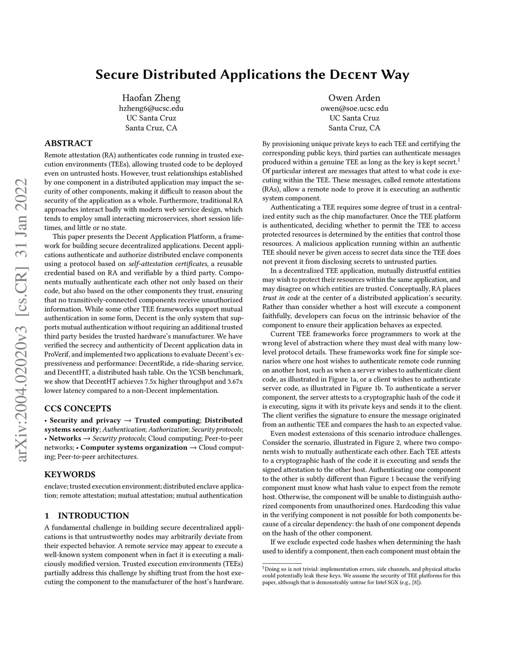 Building secure distributed applications the DECENT way