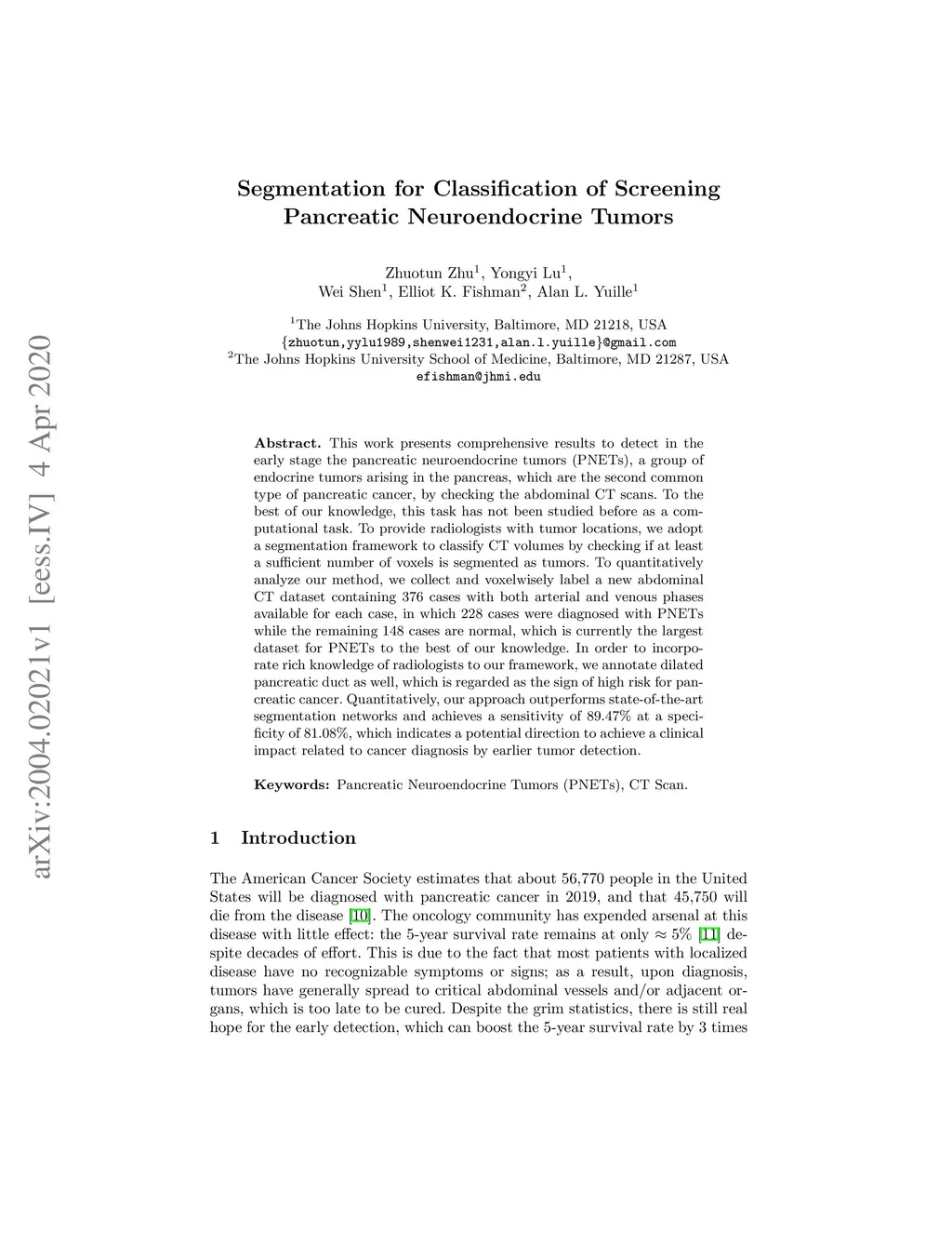 Segmentation for Classification of Screening Pancreatic Neuroendocrine