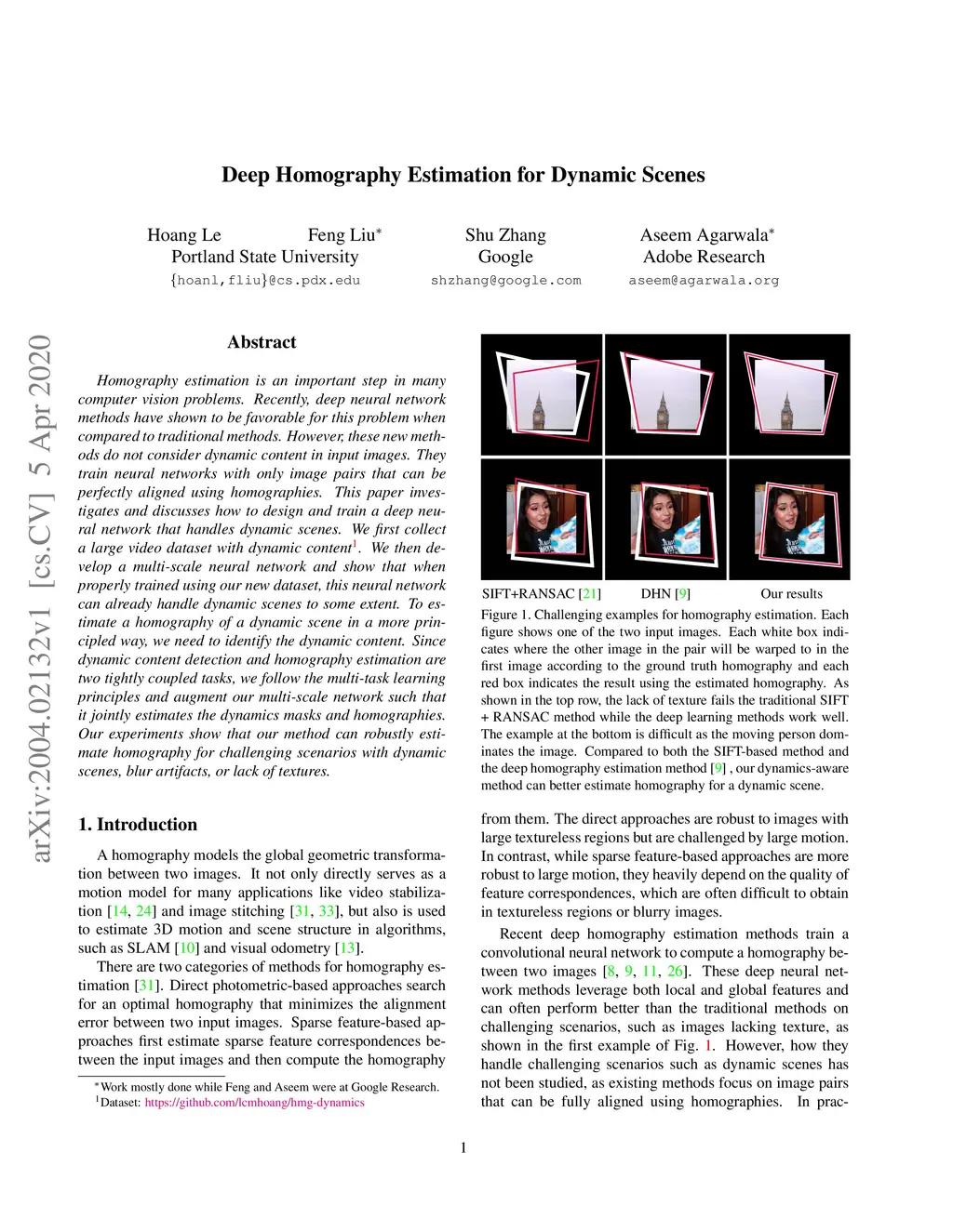 Deep Homography Estimation for Dynamic Scenes