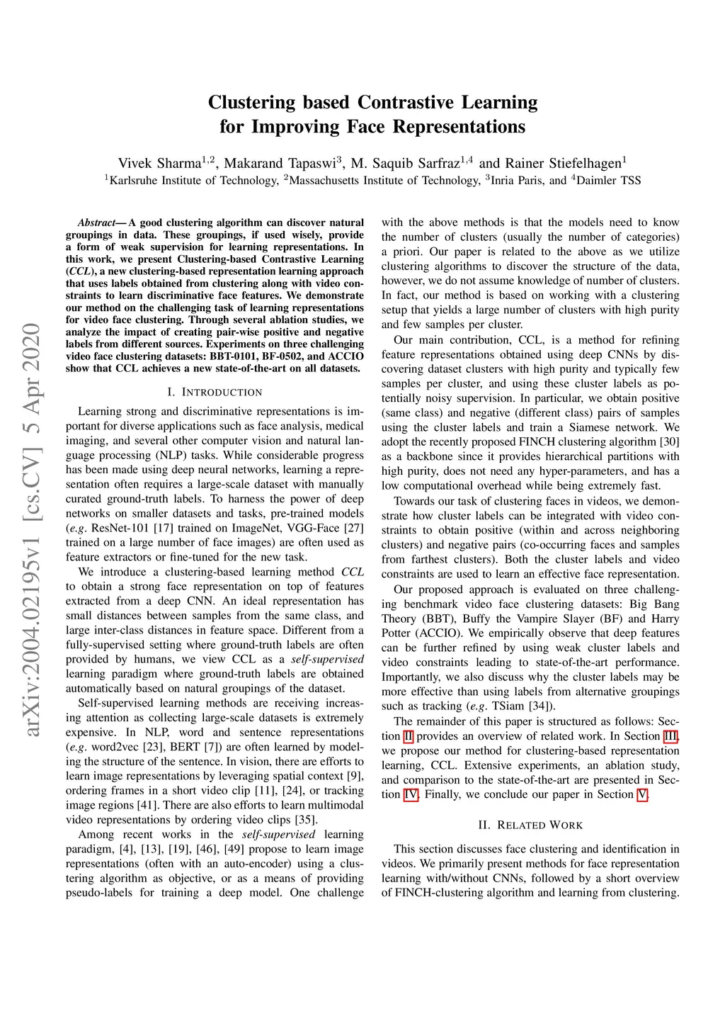 Clustering based Contrastive Learning for Improving Face Representations