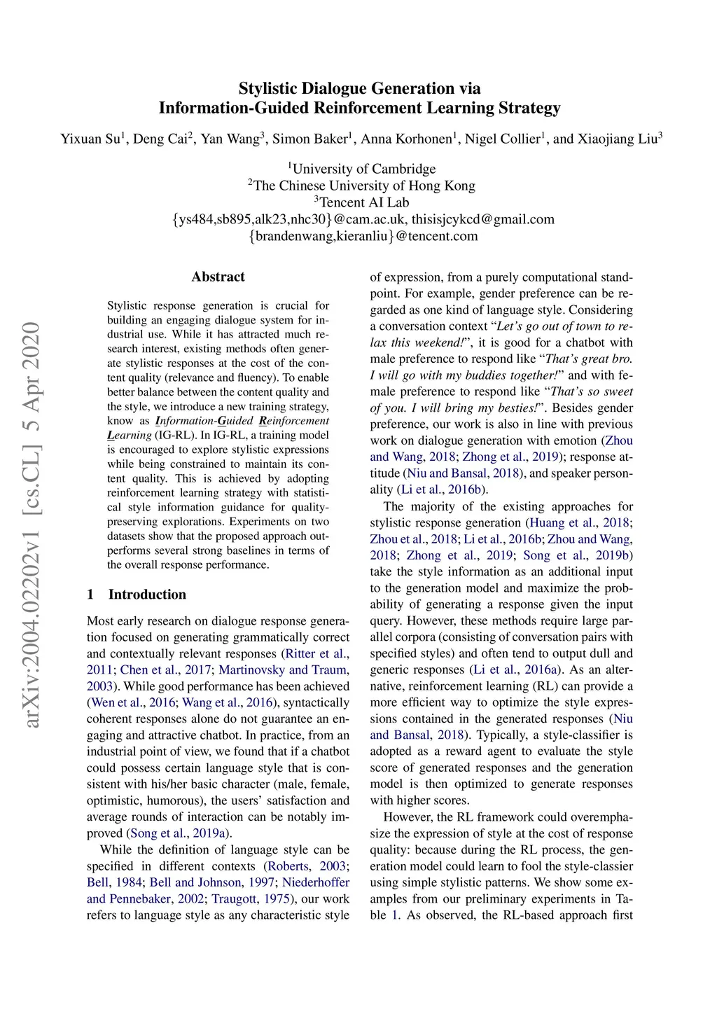 Stylistic Dialogue Generation via Information-Guided Reinforcement