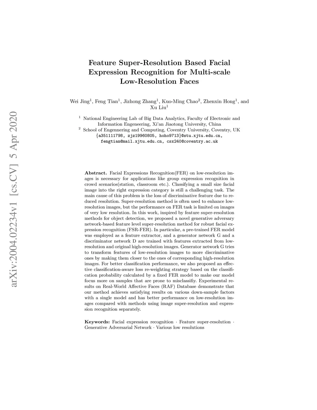 Feature Super-Resolution Based Facial Expression Recognition for