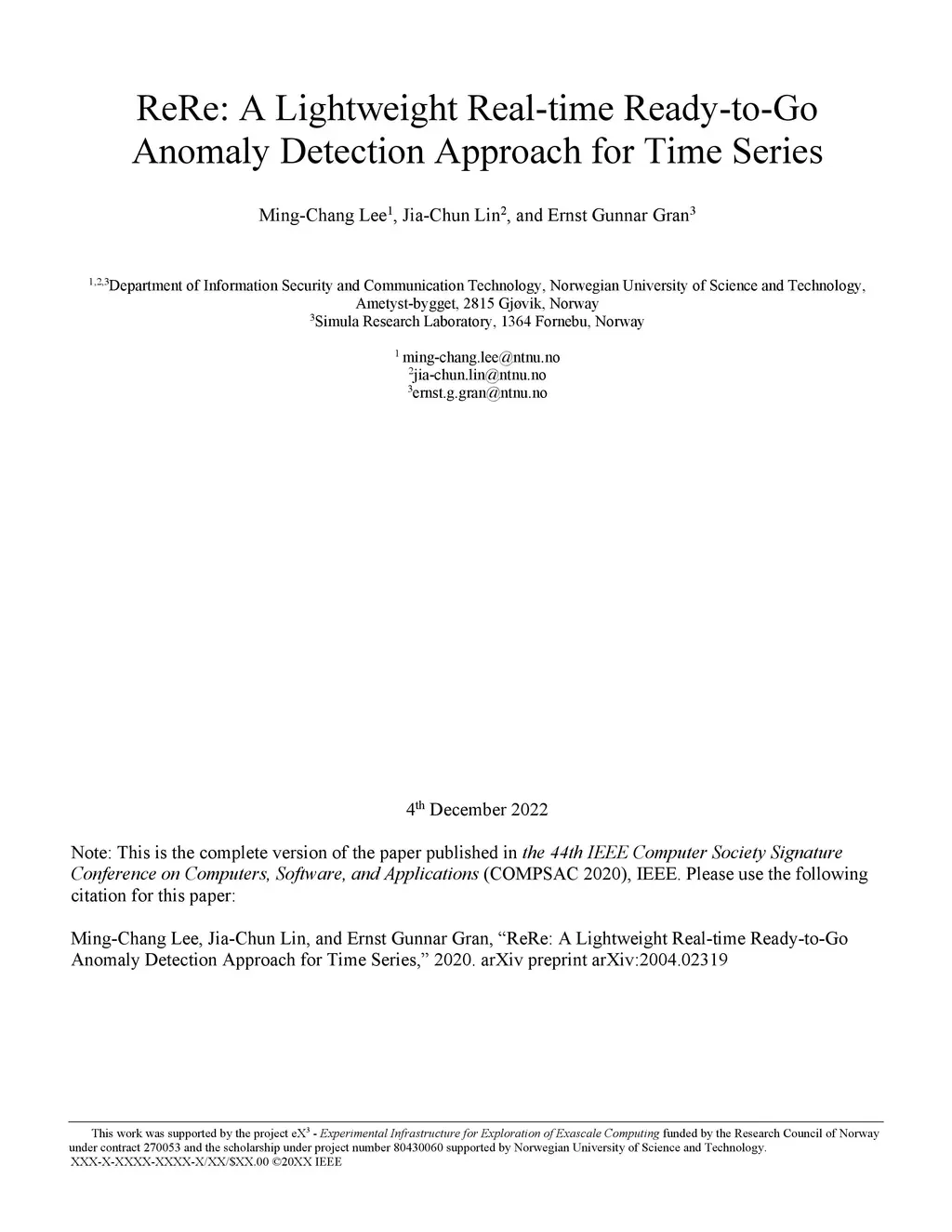 ReRe: A Lightweight Real-time Ready-to-Go Anomaly Detection Approach for