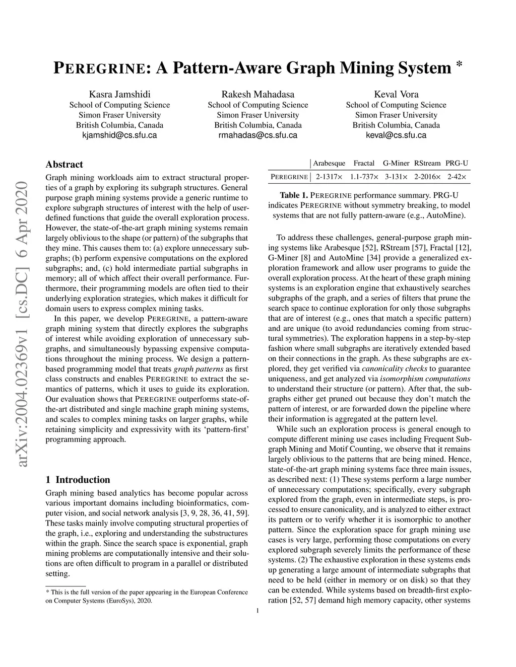 Peregrine: A Pattern-Aware Graph Mining System