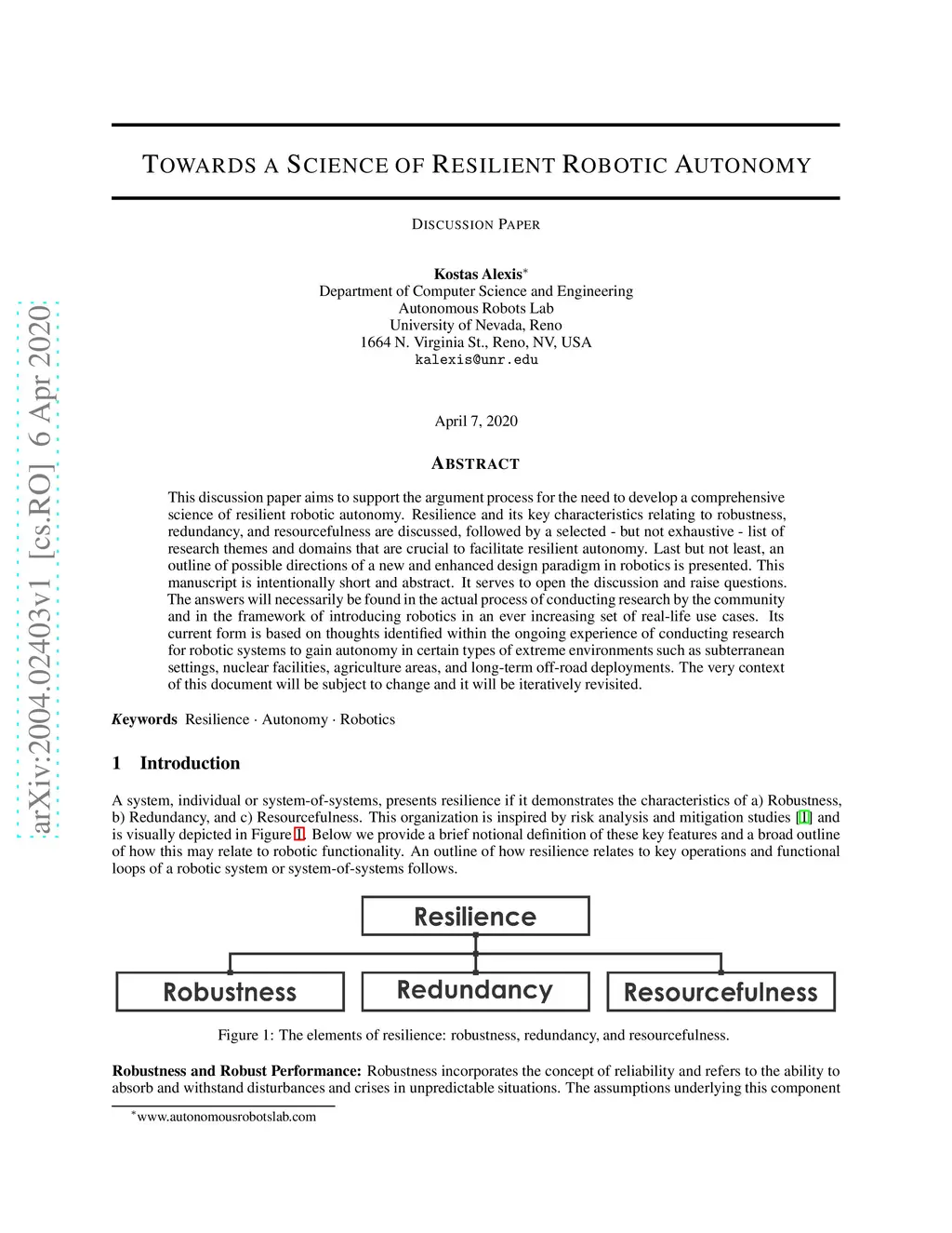 This discussion paper aims to support the argument process for the need to develop a comprehensive science of resilient robotic autonomy. Resilience and its key characteristics relating to robustness, redundancy, and resourcefulness are discussed, followed by a selected - but not exhaustive - list of research themes and domains that are crucial to facilitate resilient autonomy. Last but not least, an outline of possible directions of a new and enhanced design paradigm in robotics is presented. This manuscript is intentionally short and abstract. It serves to open the discussion and raise questions. The answers will necessarily be found in the actual process of conducting research by the community and in the framework of introducing robotics in an ever increasing set of real-life use cases. Its current form is based on thoughts identified within the ongoing experience of conducting research for robotic systems to gain autonomy in certain types of extreme environments such as subterranean settings, nuclear facilities, agriculture areas, and long-term off-road deployments. The very context of this document will be subject to change and it will be iteratively revisited.