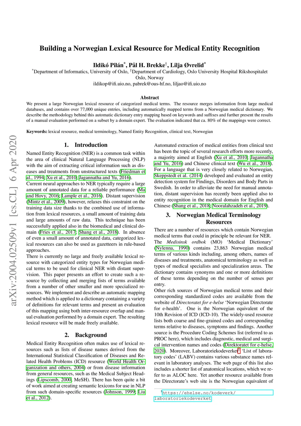Building a Norwegian Lexical Resource for Medical Entity Recognition