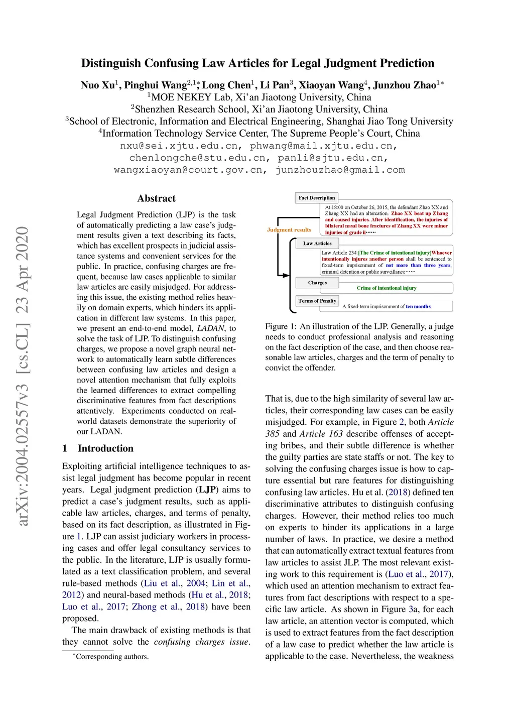 Legal Judgment Prediction (LJP) is the task of automatically predicting a law case's judgment results given a text describing its facts, which has excellent prospects in judicial assistance systems and convenient services for the public. In practice, confusing charges are frequent, because law cases applicable to similar law articles are easily misjudged. For addressing this issue, the existing method relies heavily on domain experts, which hinders its application in different law systems. In this paper, we present an end-to-end model, LADAN, to solve the task of LJP. To distinguish confusing charges, we propose a novel graph neural network to automatically learn subtle differences between confusing law articles and design a novel attention mechanism that fully exploits the learned differences to extract compelling discriminative features from fact descriptions attentively. Experiments conducted on real-world datasets demonstrate the superiority of our LADAN.