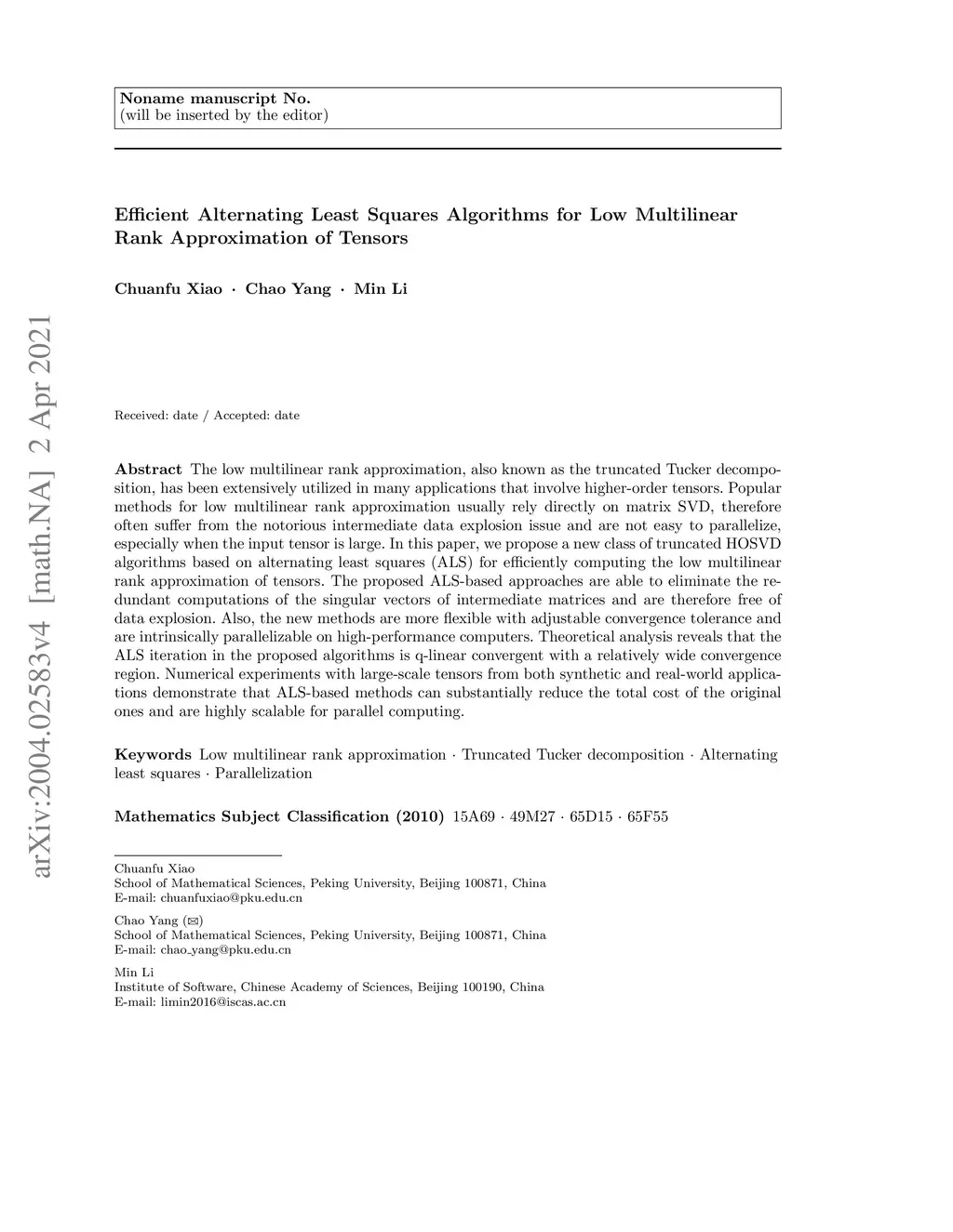 Efficient Alternating Least Squares Algorithms for Truncated HOSVD of