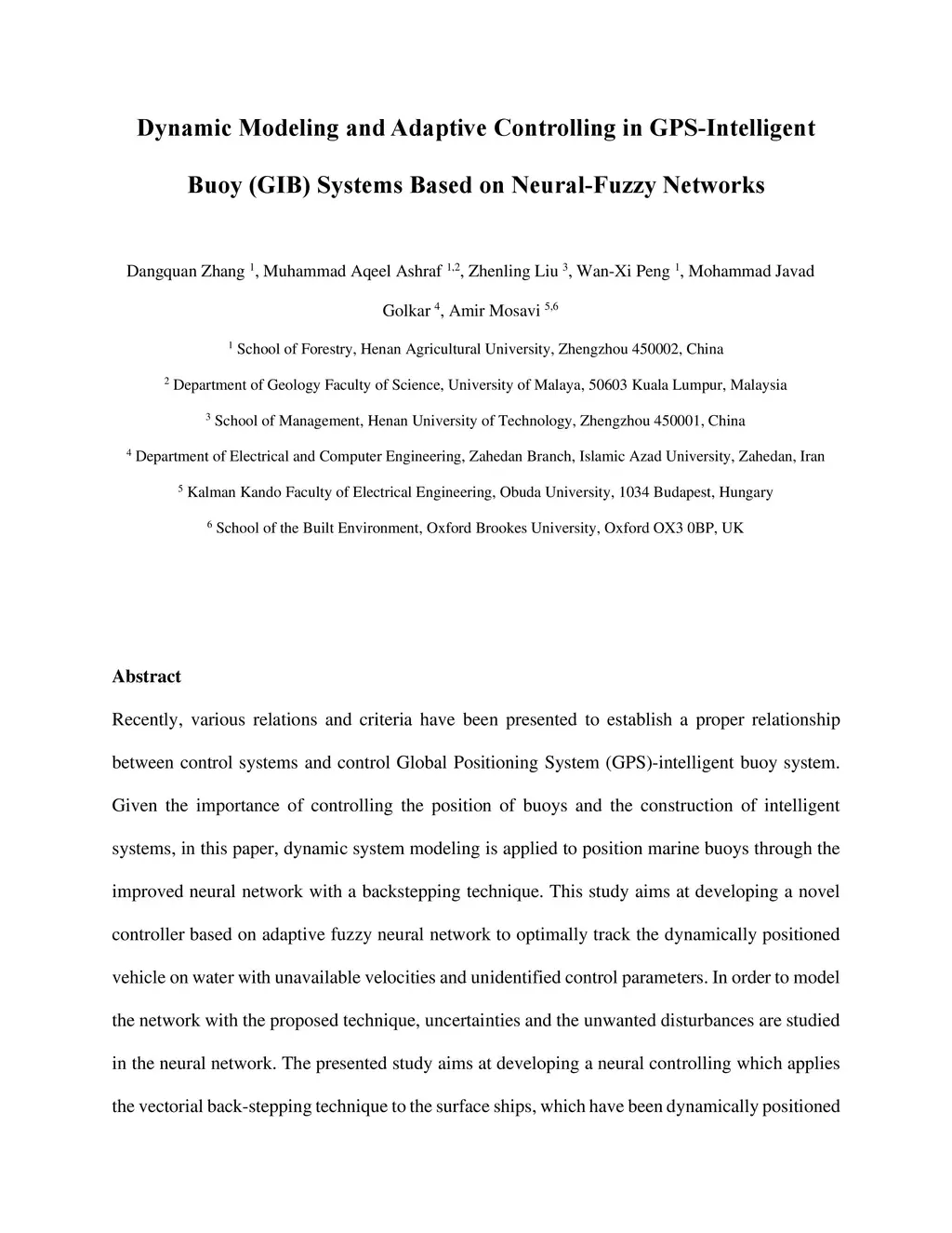 Dynamic Modeling and Adaptive Controlling in GPS-Intelligent Buoy (GIB)
