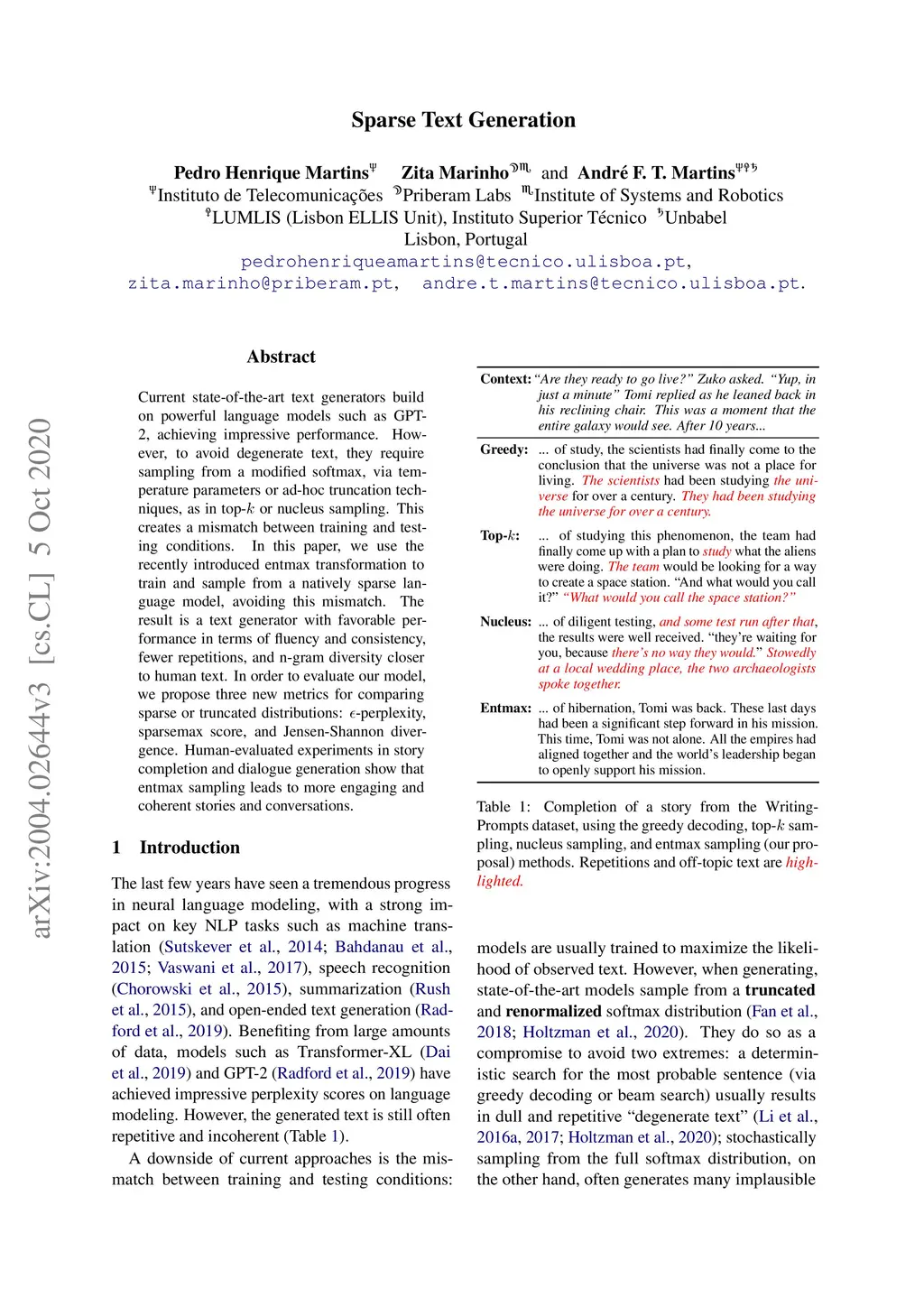 Sparse Text Generation