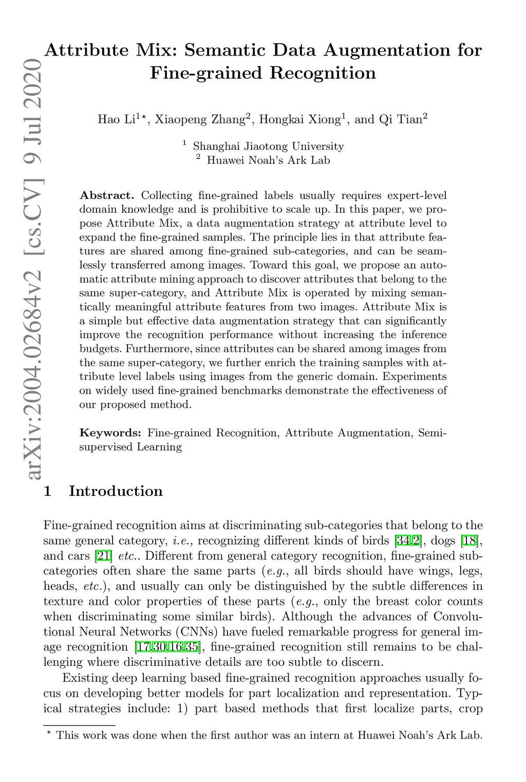 Attribute Mix: Semantic Data Augmentation for Fine Grained Recognition